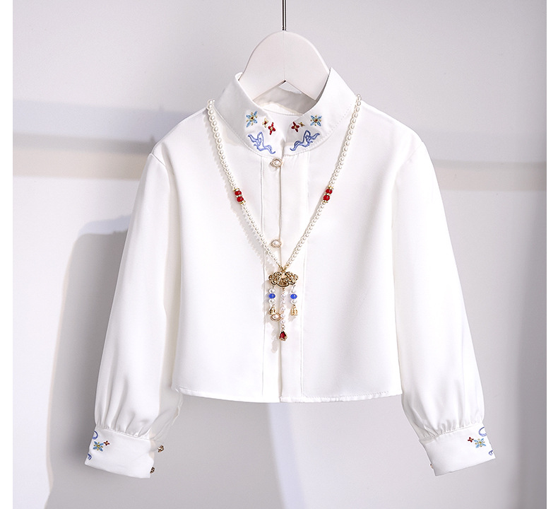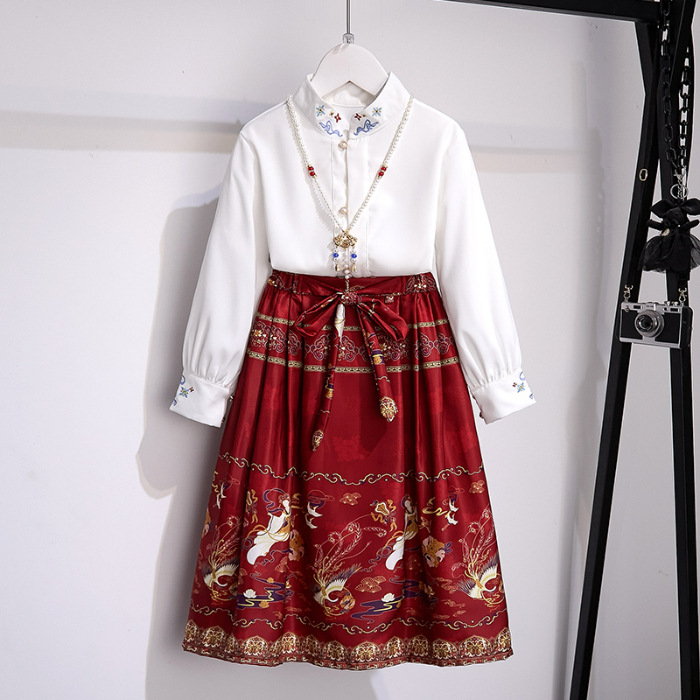 한푸 소녀의 새로운 중국 스타일 국가 스타일 셔츠 말 얼굴 치마 세트 패션 중 큰 어린이 긴팔 칼라 탑 투피스 세트