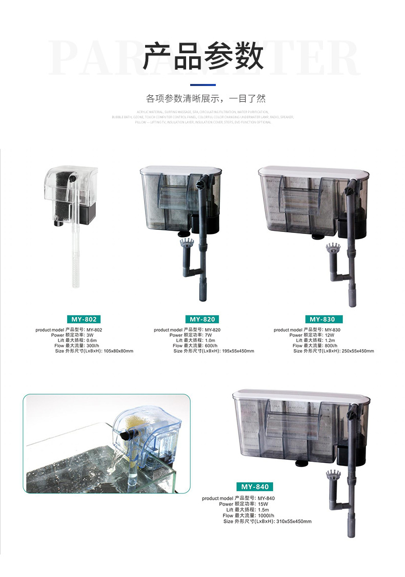폭포 어항 필터 필터 장비 산소 필터 3 대 1 외부 탱크 수족관 오버 헤드 필터