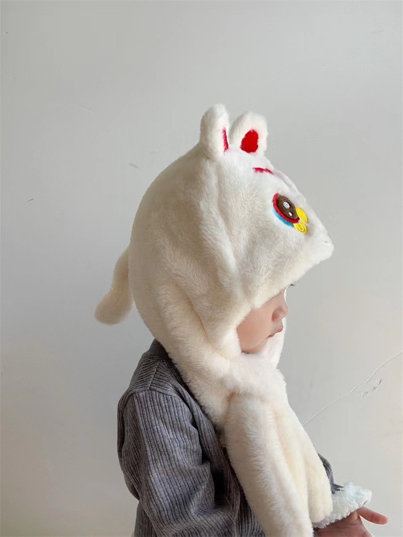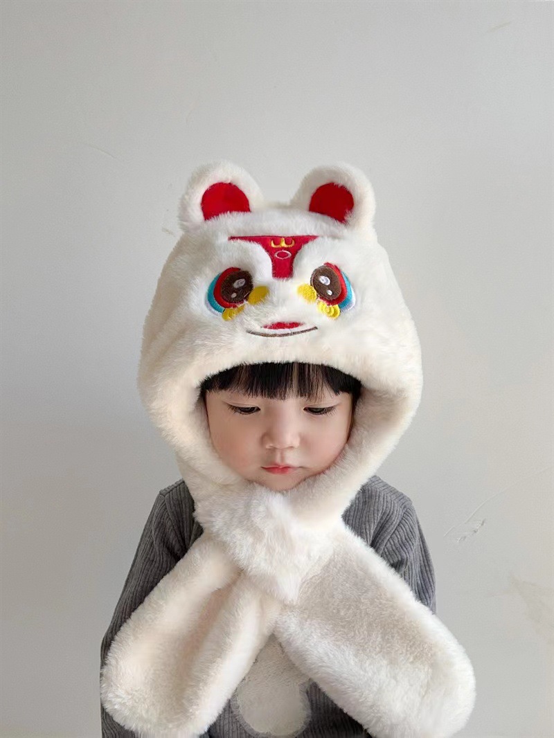 어린이 모자 스카프 두 조각 세트 만화 귀여운 사자 댄스 소년과 소년 아이들의 푹신한 모자 겨울 아기 방풍 통합 모자