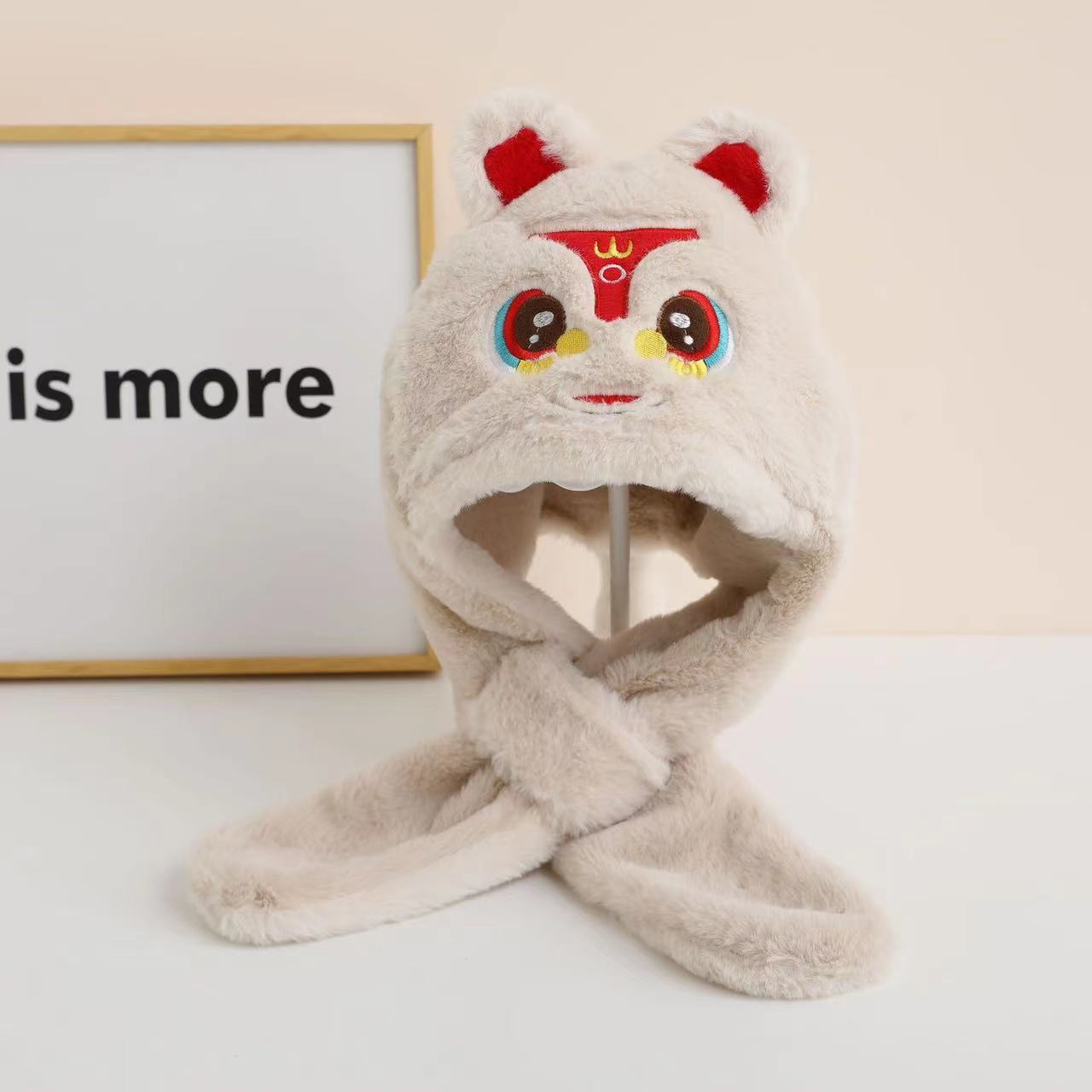 어린이 모자 스카프 두 조각 세트 만화 귀여운 사자 댄스 소년과 소년 아이들의 푹신한 모자 겨울 아기 방풍 통합 모자스토어 가기