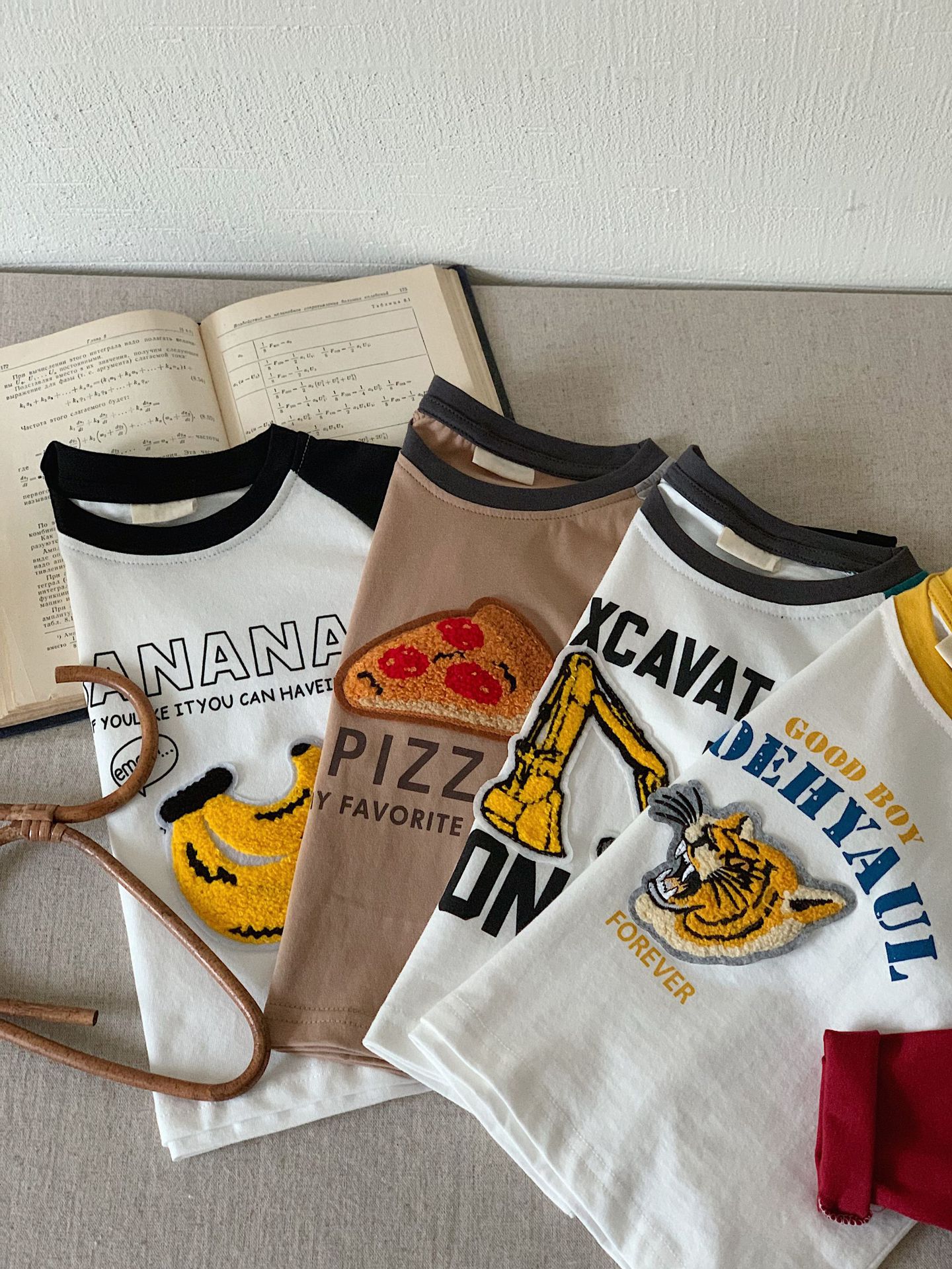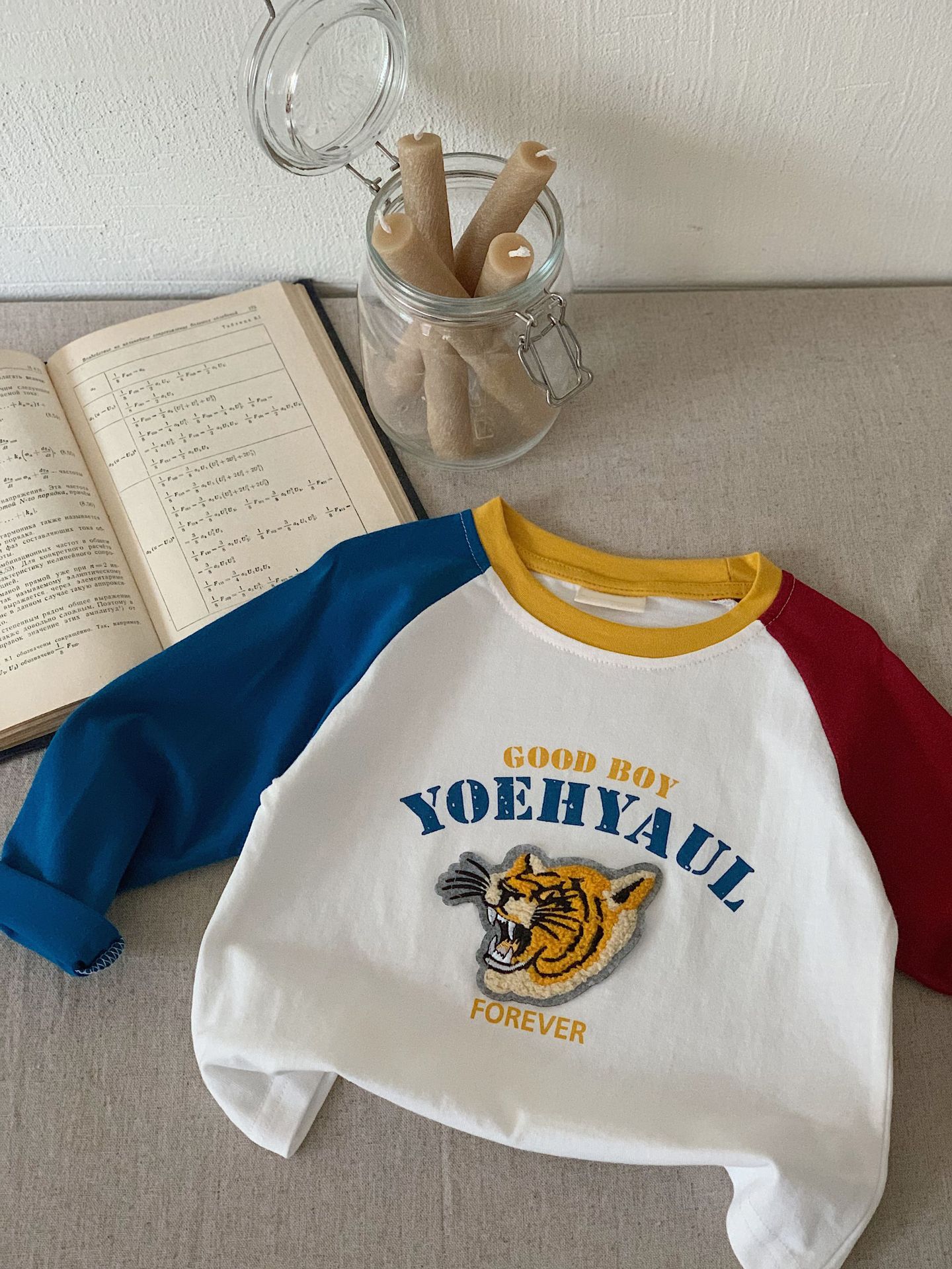 부가탕 2025 가을 아동복 신상품 일본 스타일 티셔츠 유아 남녀 아기 수건 자수 배색 긴팔 티셔츠스토어 가기
