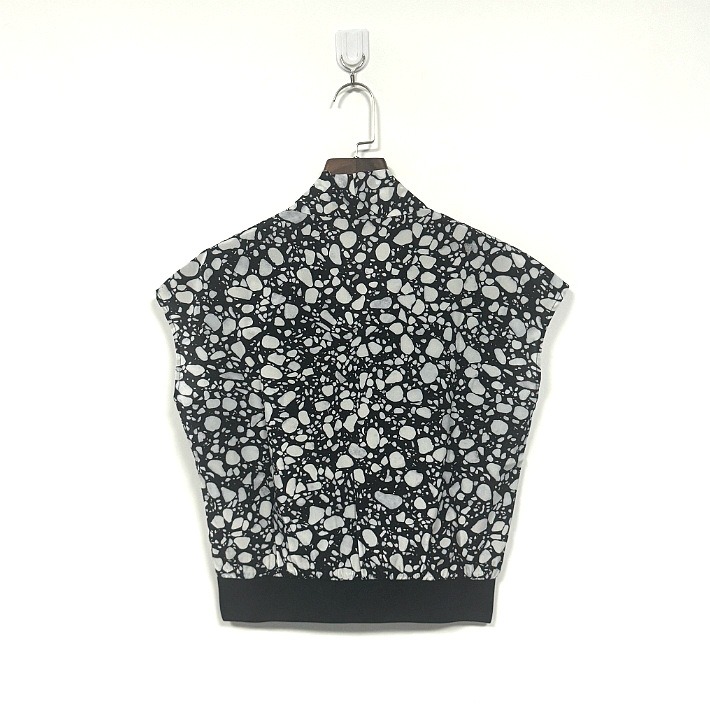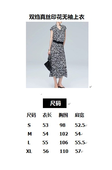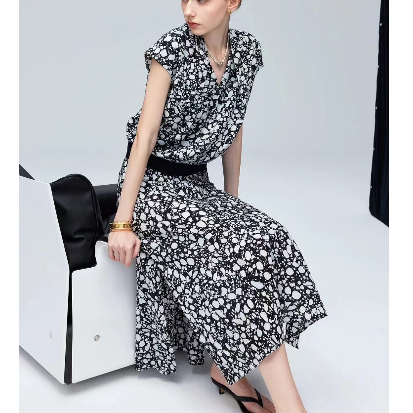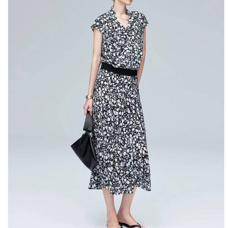 Fanjia 2024 가을 새로운 우아한 우아한 테라 조 인쇄 크레페 드 친 실크 민소매 셔츠/스커트스토어 가기