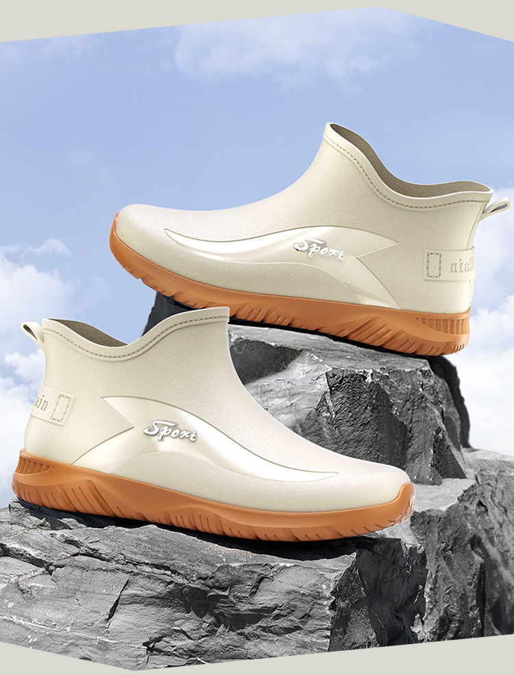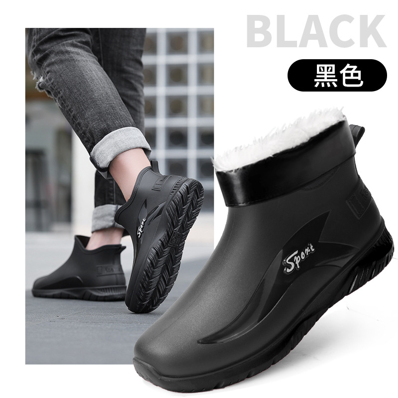 트렌디 한 남성용 짧은 배럴 비 부츠 블랙 도시 남성용 워터 부츠 미끄럼 방지 부츠 남성용 방수 고무 신발 Khachi 남성용 신발 워터 슈즈스토어 가기