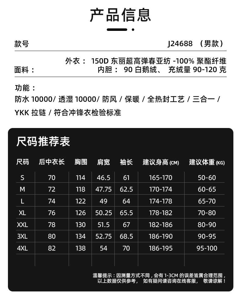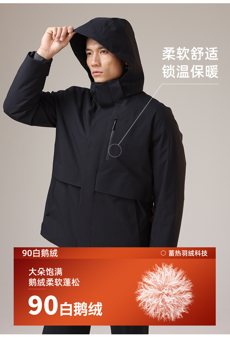 새로운 야외 캠핑 비즈니스 재킷 구스 다운 라이너 따뜻한 남성용 3-in-One 방수 방풍 접착 등산 재킷