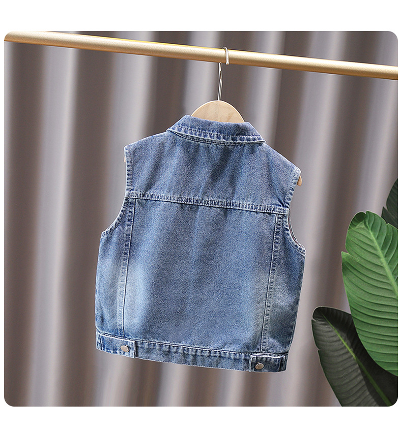소년을위한 데님 양복 조끼 2024 년 새 봄과 가을 아기 양복 조끼 2 세 소년을위한 어린이 가을 의류스토어 가기