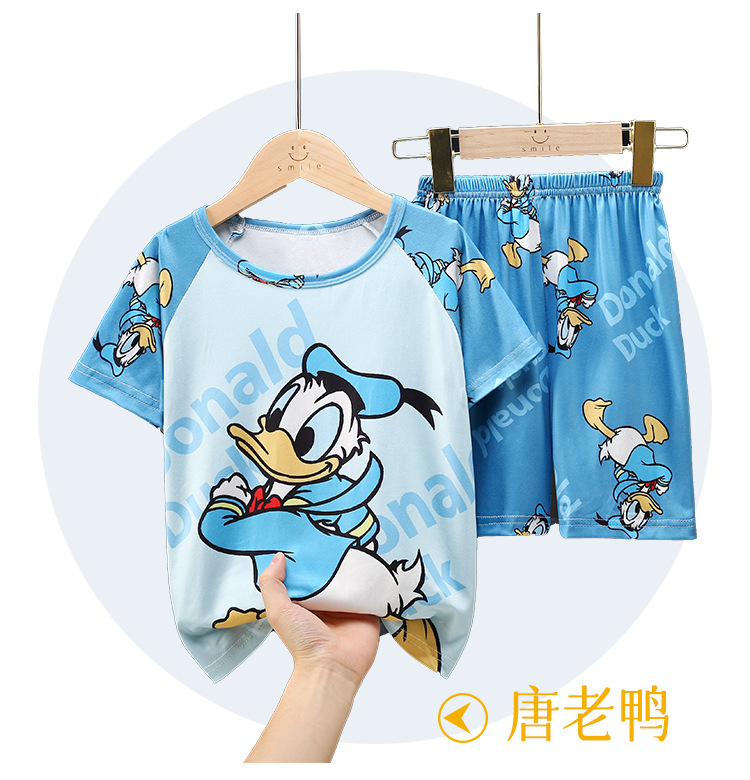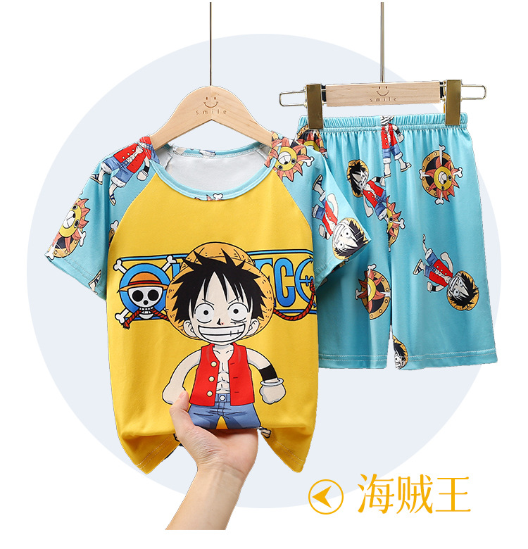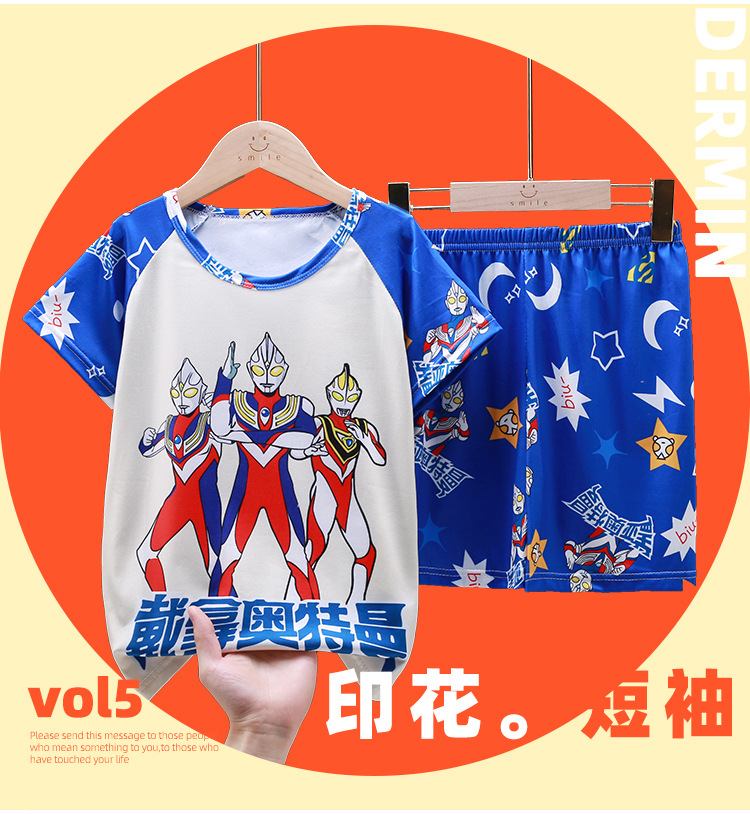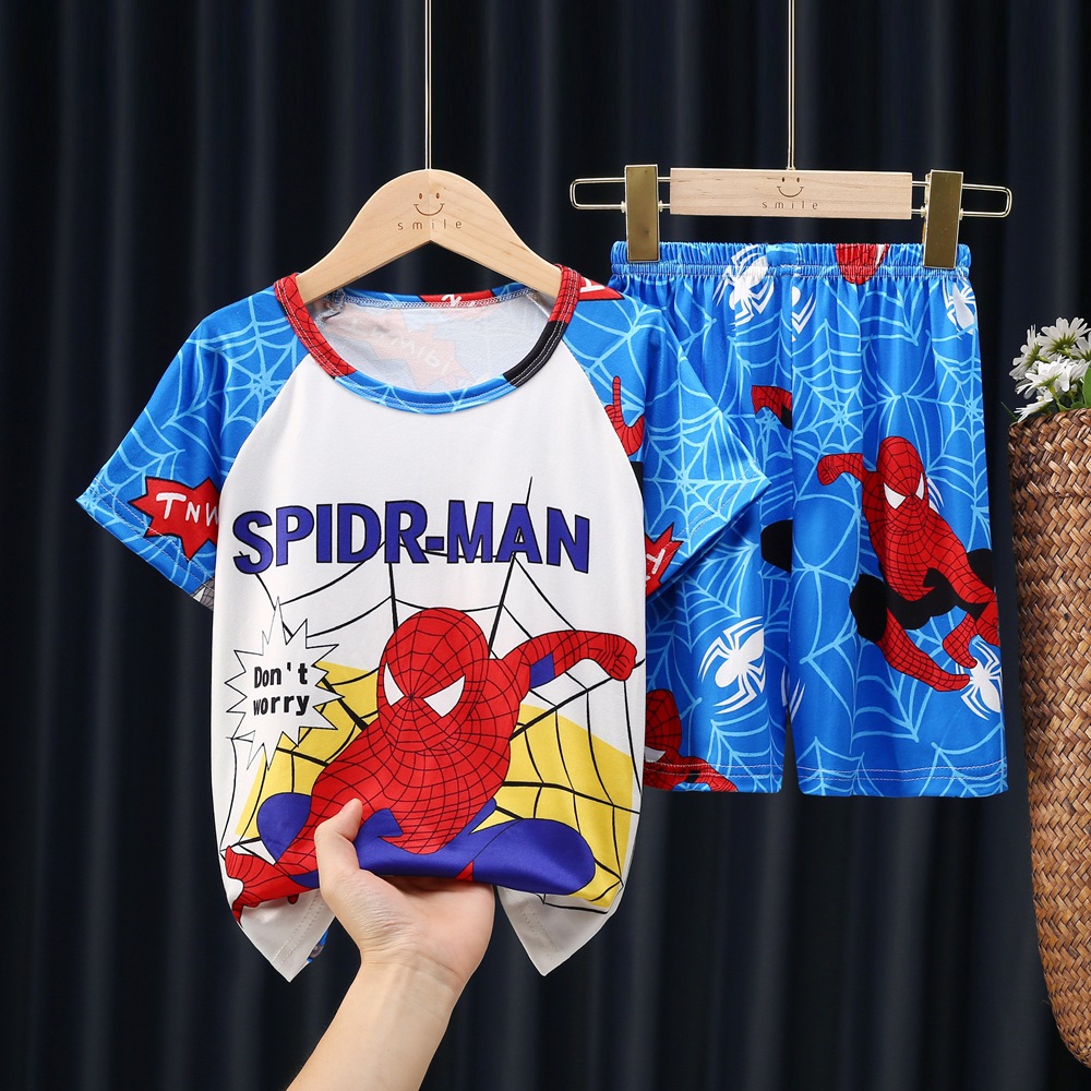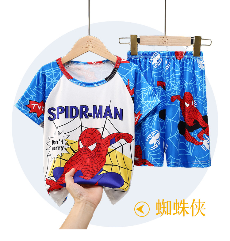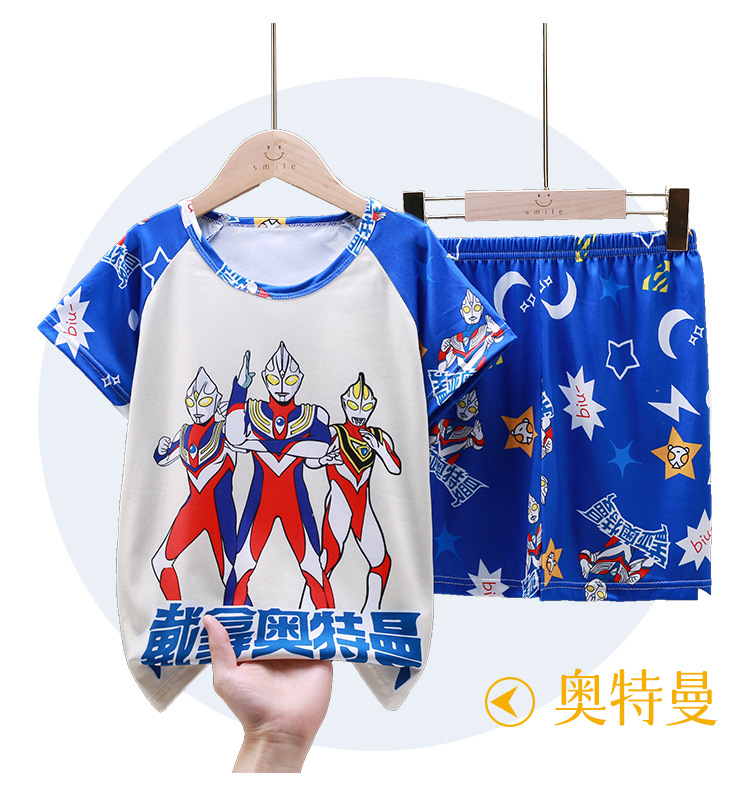 남학생 잠옷 얇고 여학생 통기성 아동집 옷 중대형 어린이 만화 어린이 반소매 여름 세트 대외 무역