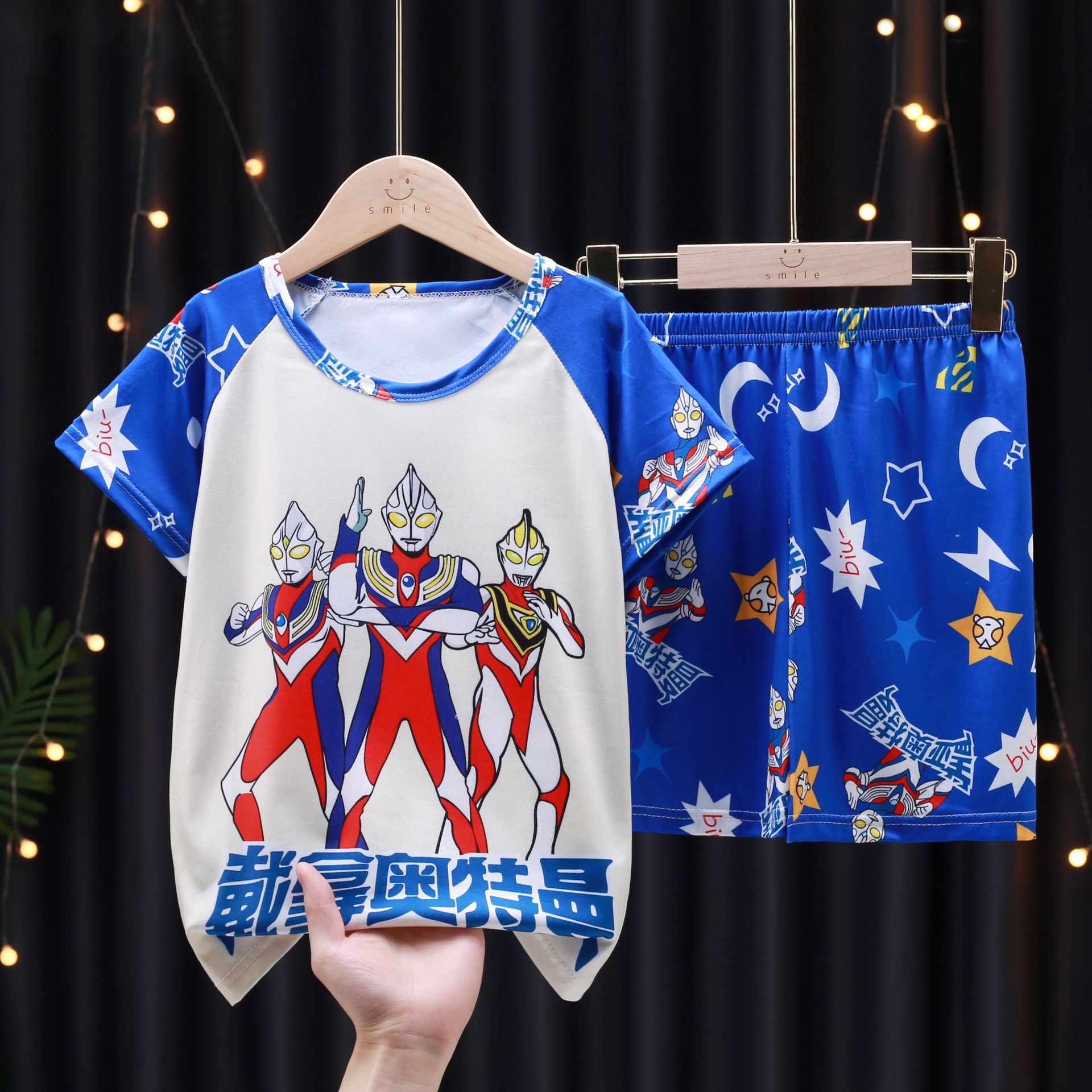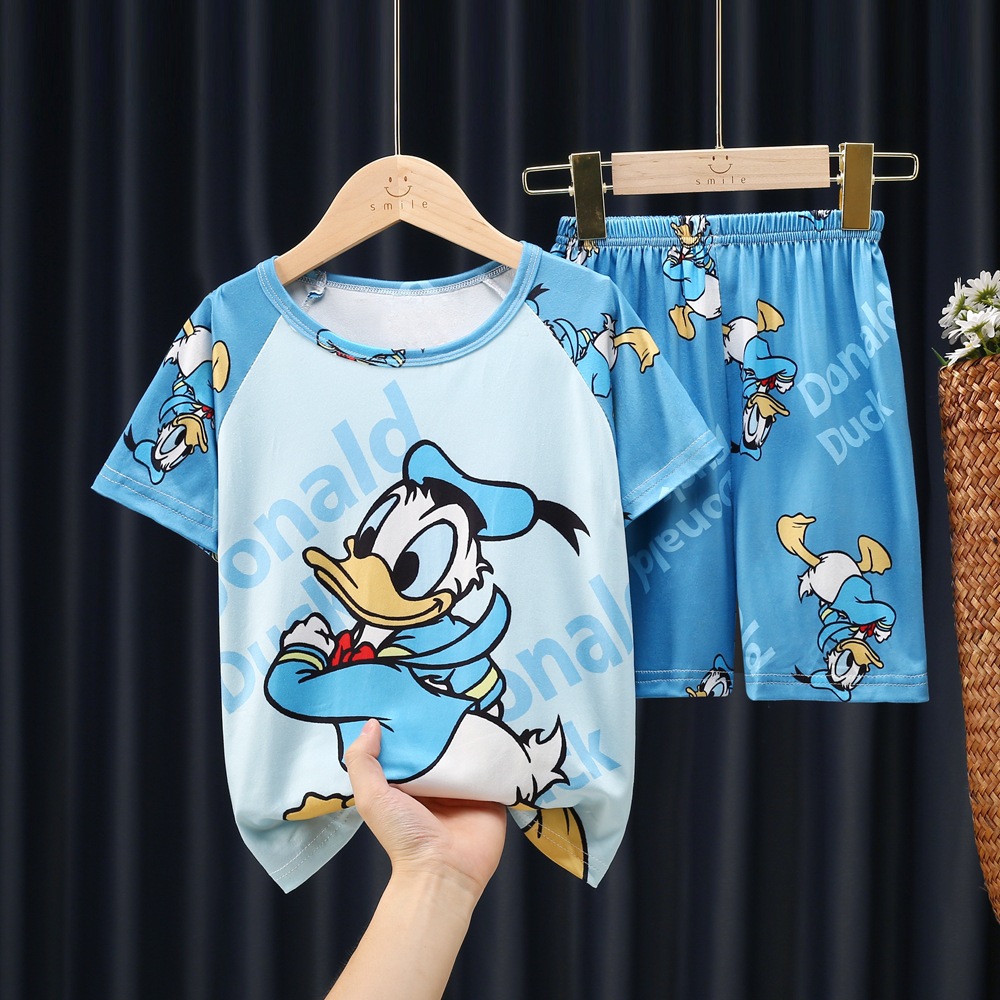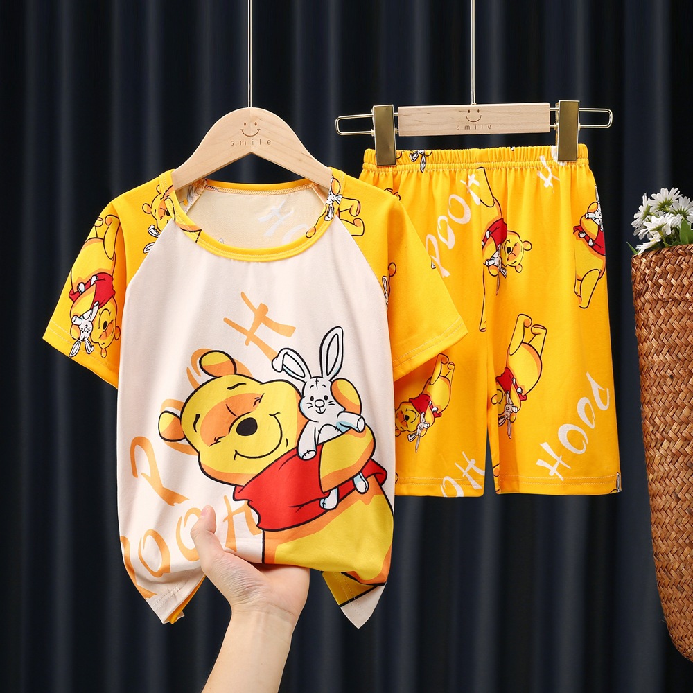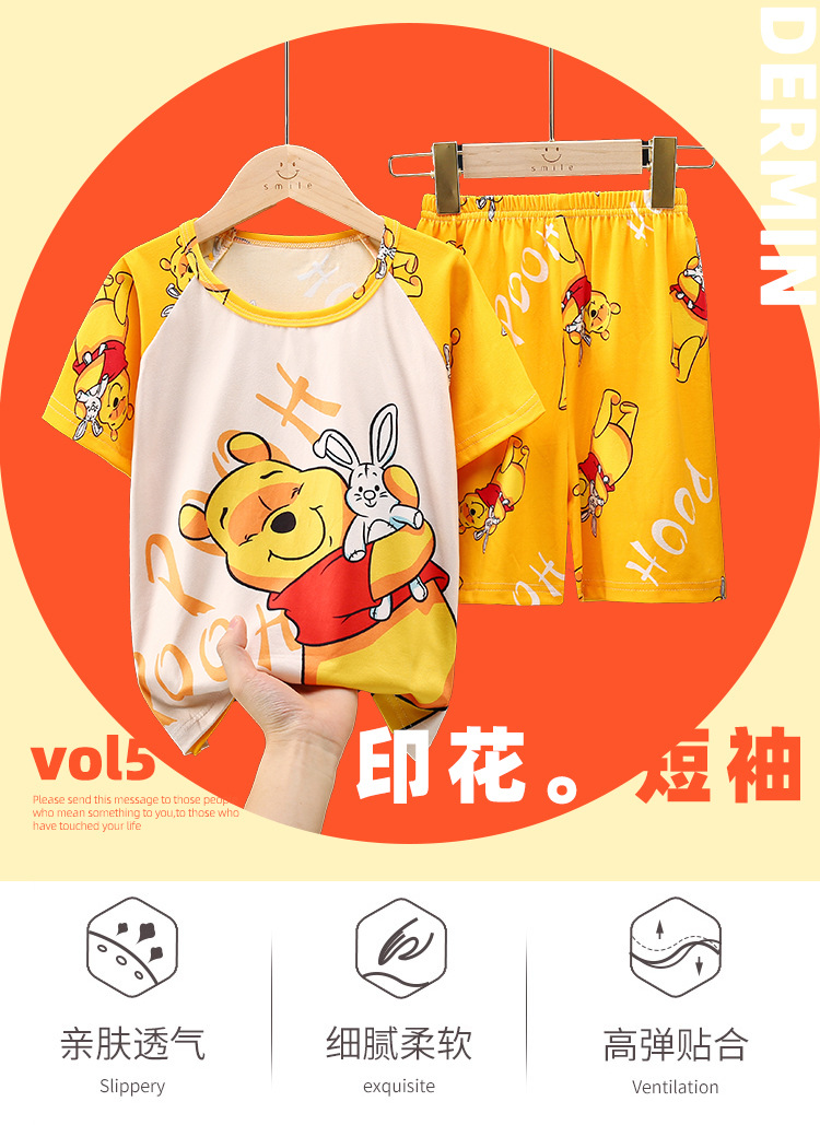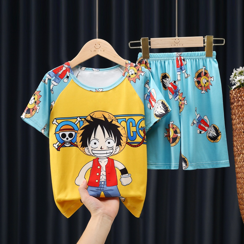 남학생 잠옷 얇고 여학생 통기성 아동집 옷 중대형 어린이 만화 어린이 반소매 여름 세트 대외 무역