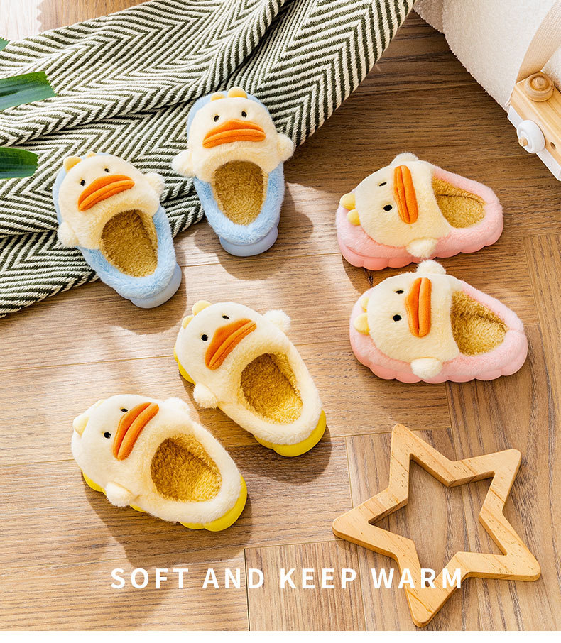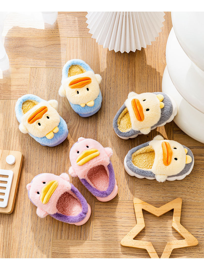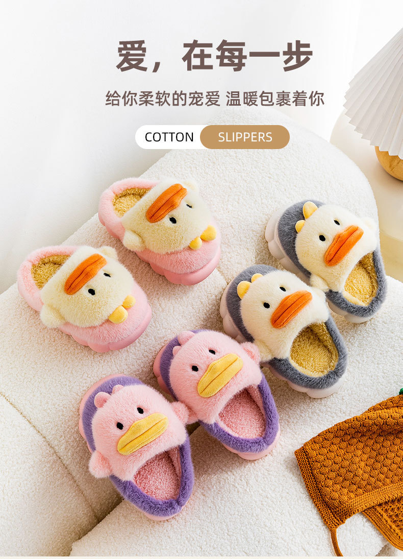 가을 2023 남성과 여성을위한 새로운 만화 어린이 슬리퍼 어린이 홈 오리 슬리퍼 가을과 겨울을위한 귀여운 면 슬리퍼