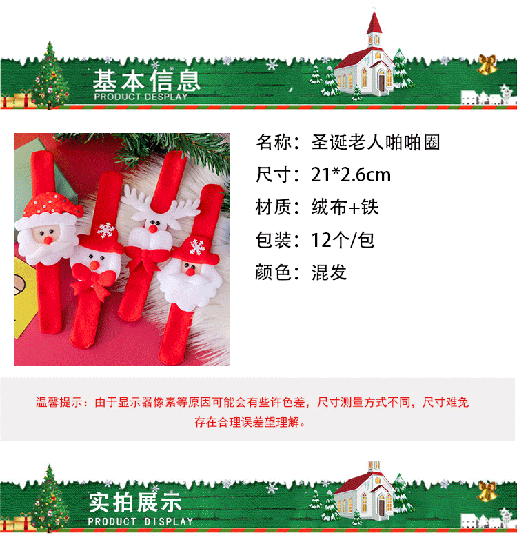 크리스마스 선물 빛나는 팝 반지 산타 클로스 팔찌 어린이 장난감 학생과 어린이를위한 휴일 선물