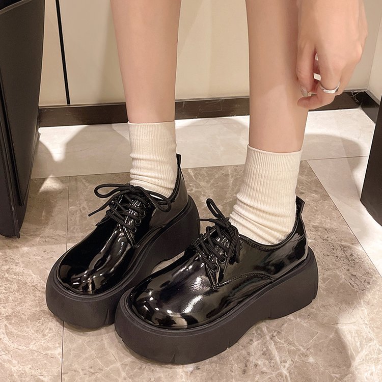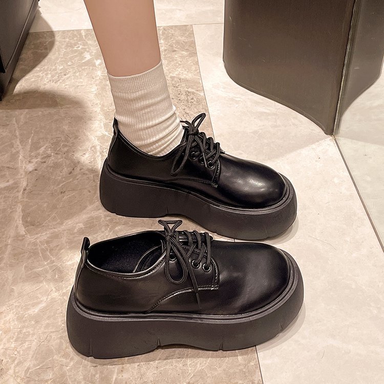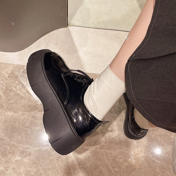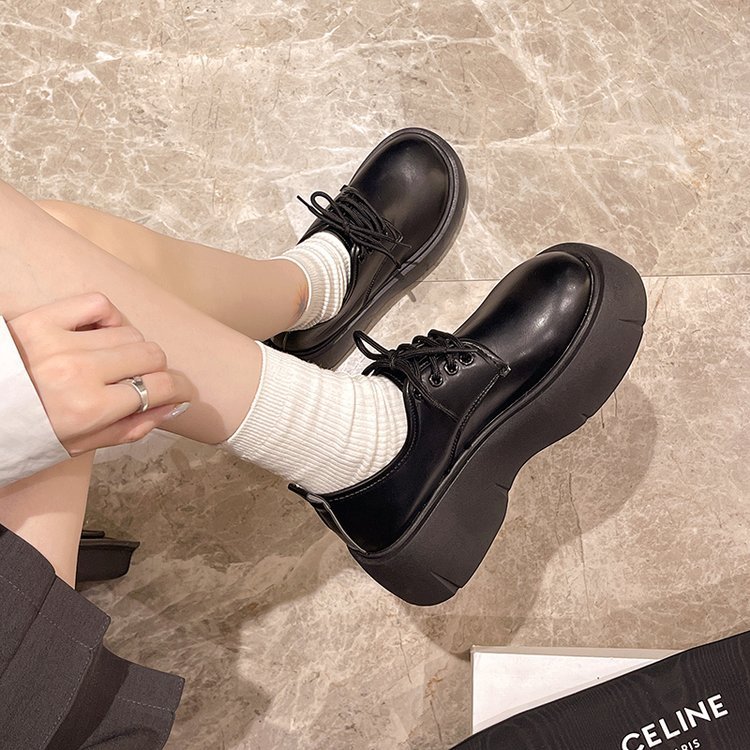 블랙 프렌치 스타일 레트로 라운드 토이 두꺼운 가죽 신발 여성의 2024 새로운 가을 영국 스타일 올 매치 두꺼운 힐 로퍼