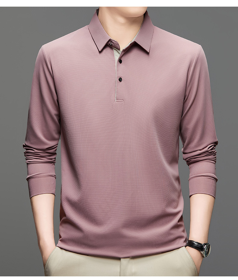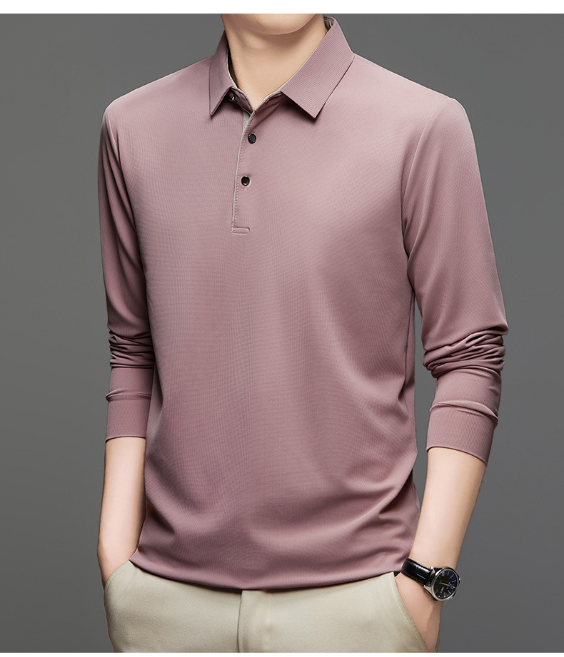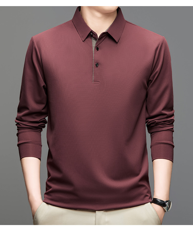 남자 원활한 긴팔 폴로 셔츠 봄 · 가을 플래켓 보이지 않는 스티칭 다림질 중년 옷깃 올매치베이스 셔츠 트렌디스토어 가기