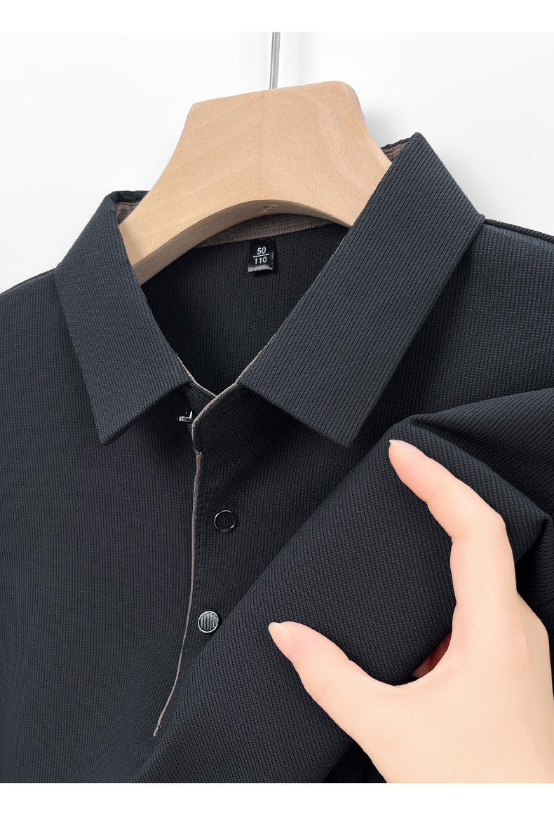 남자 원활한 긴팔 폴로 셔츠 봄 · 가을 플래켓 보이지 않는 스티칭 다림질 중년 옷깃 올매치베이스 셔츠 트렌디
