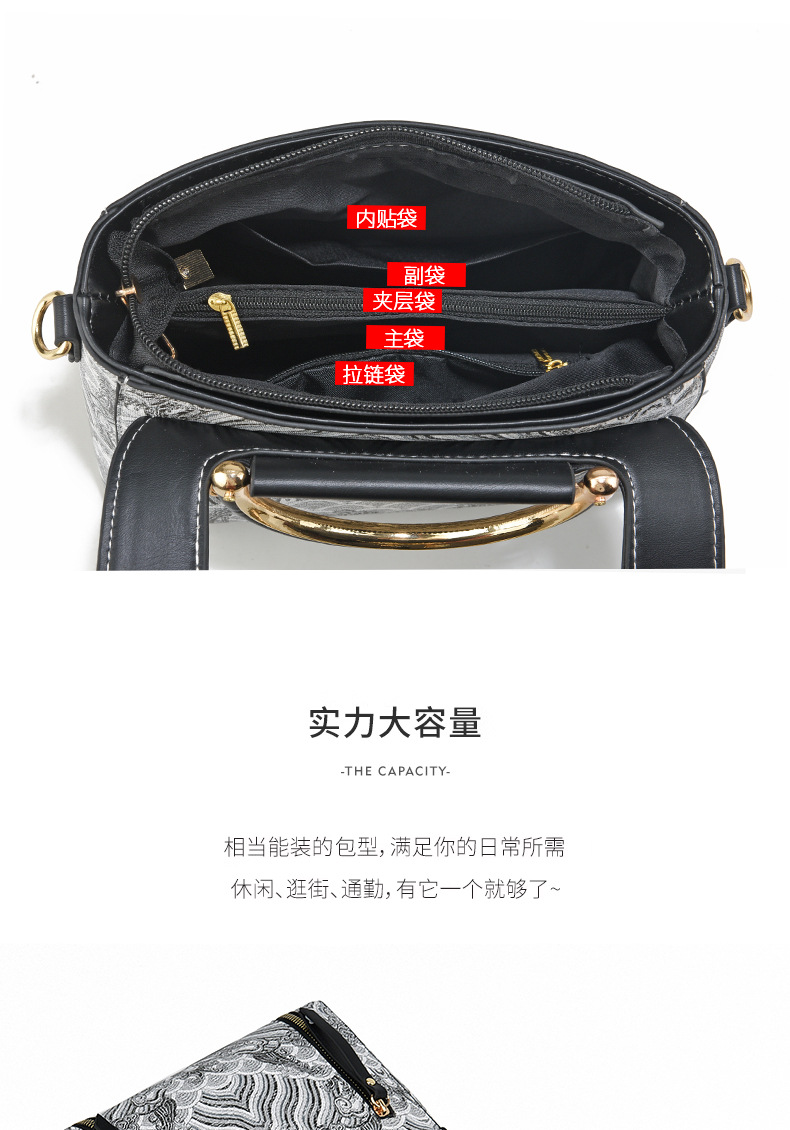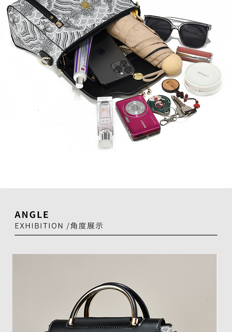 2024 새로운 색상 대비 가벼운 럭셔리 패션 국경 올 매치 인쇄 핸드백 인터넷 연예인 아내 어깨 크로스 바디 백