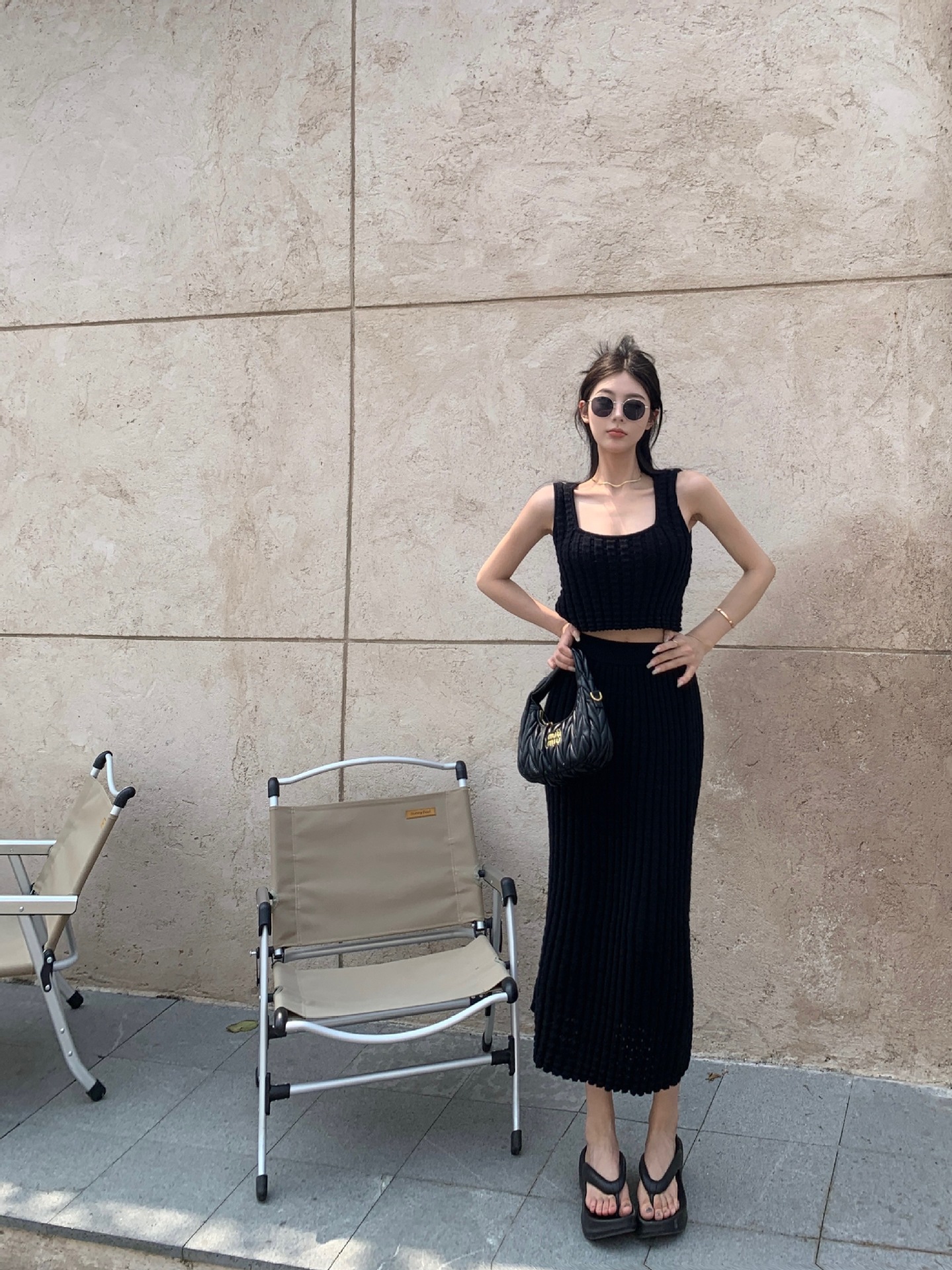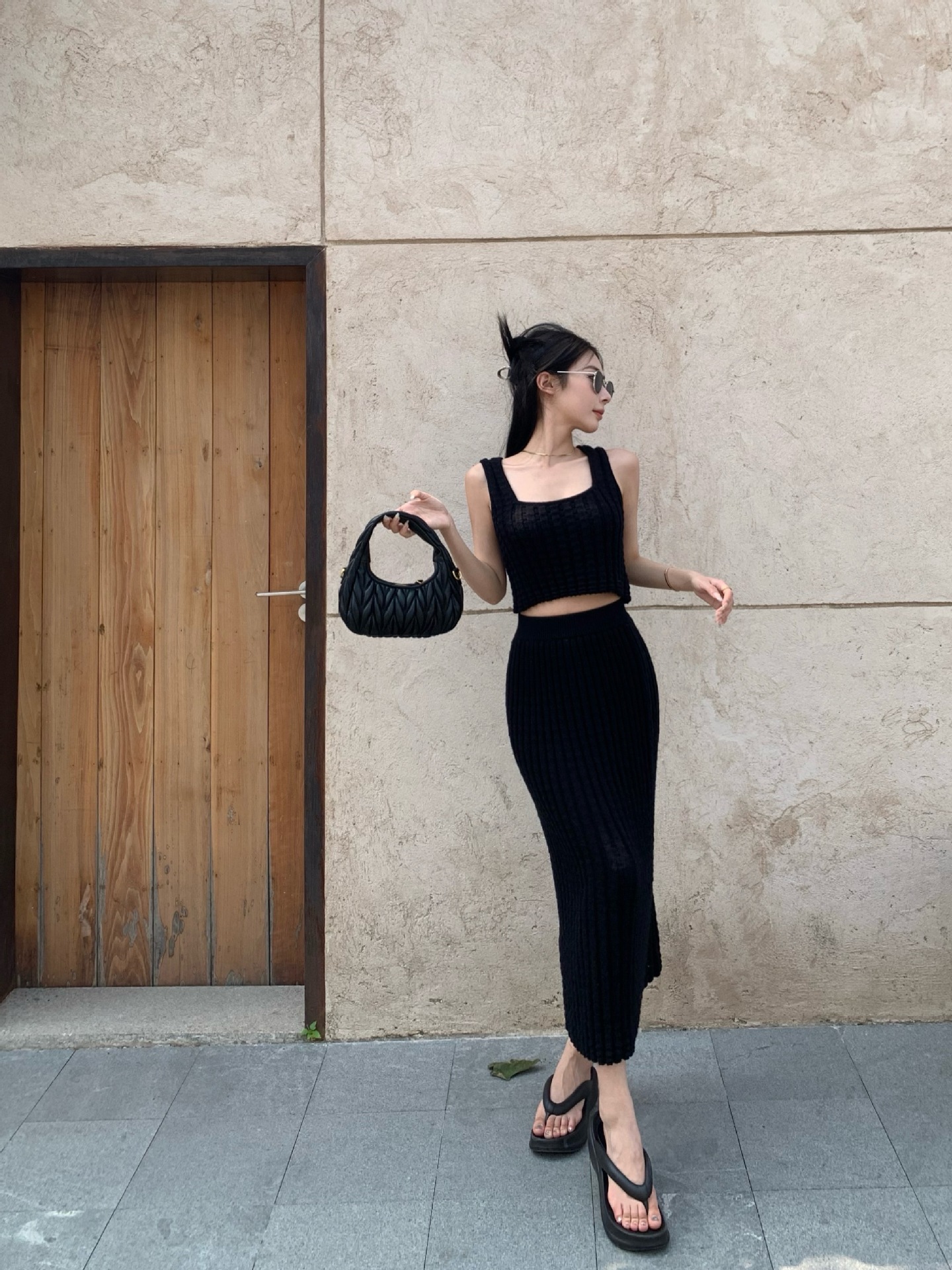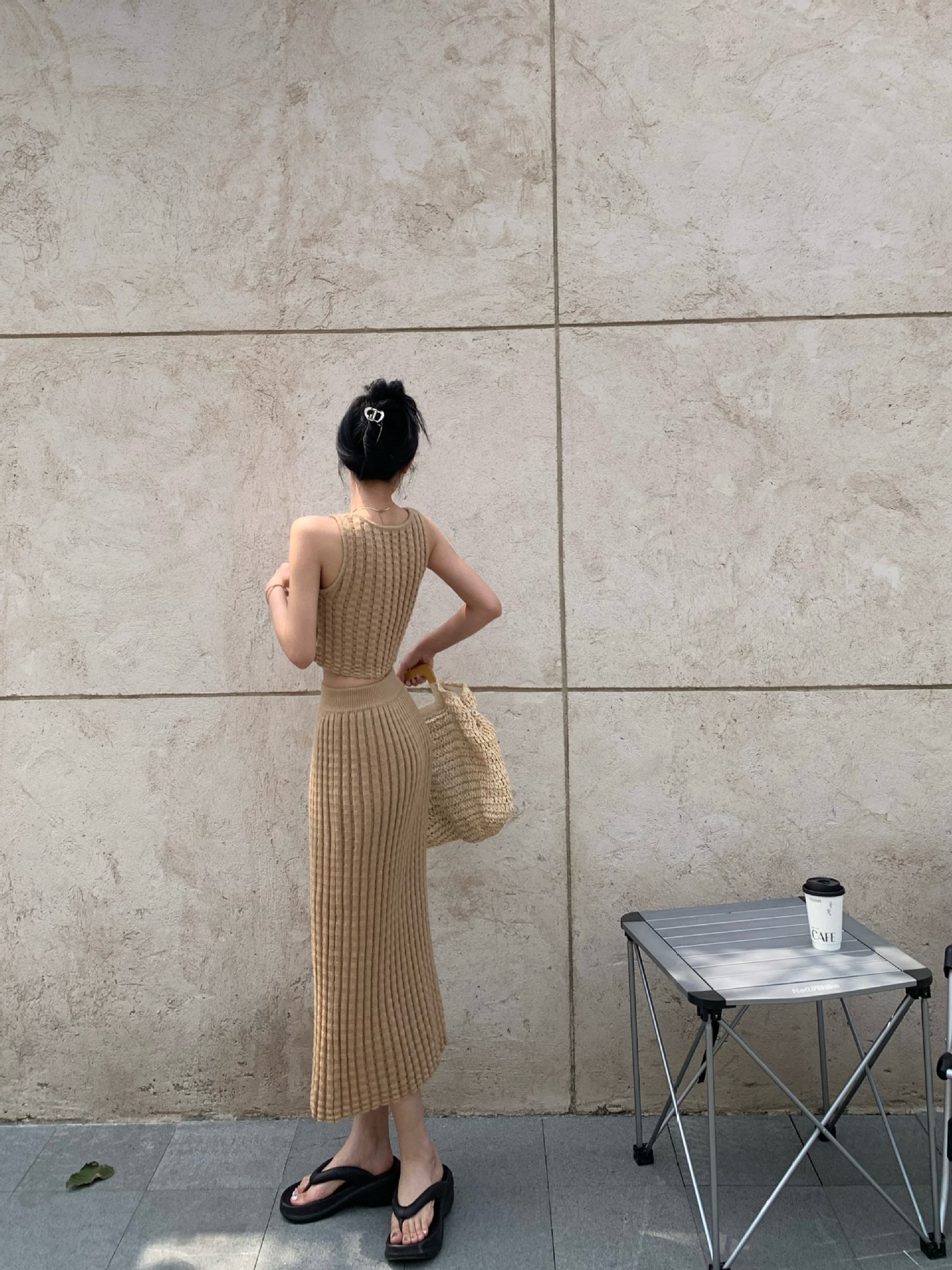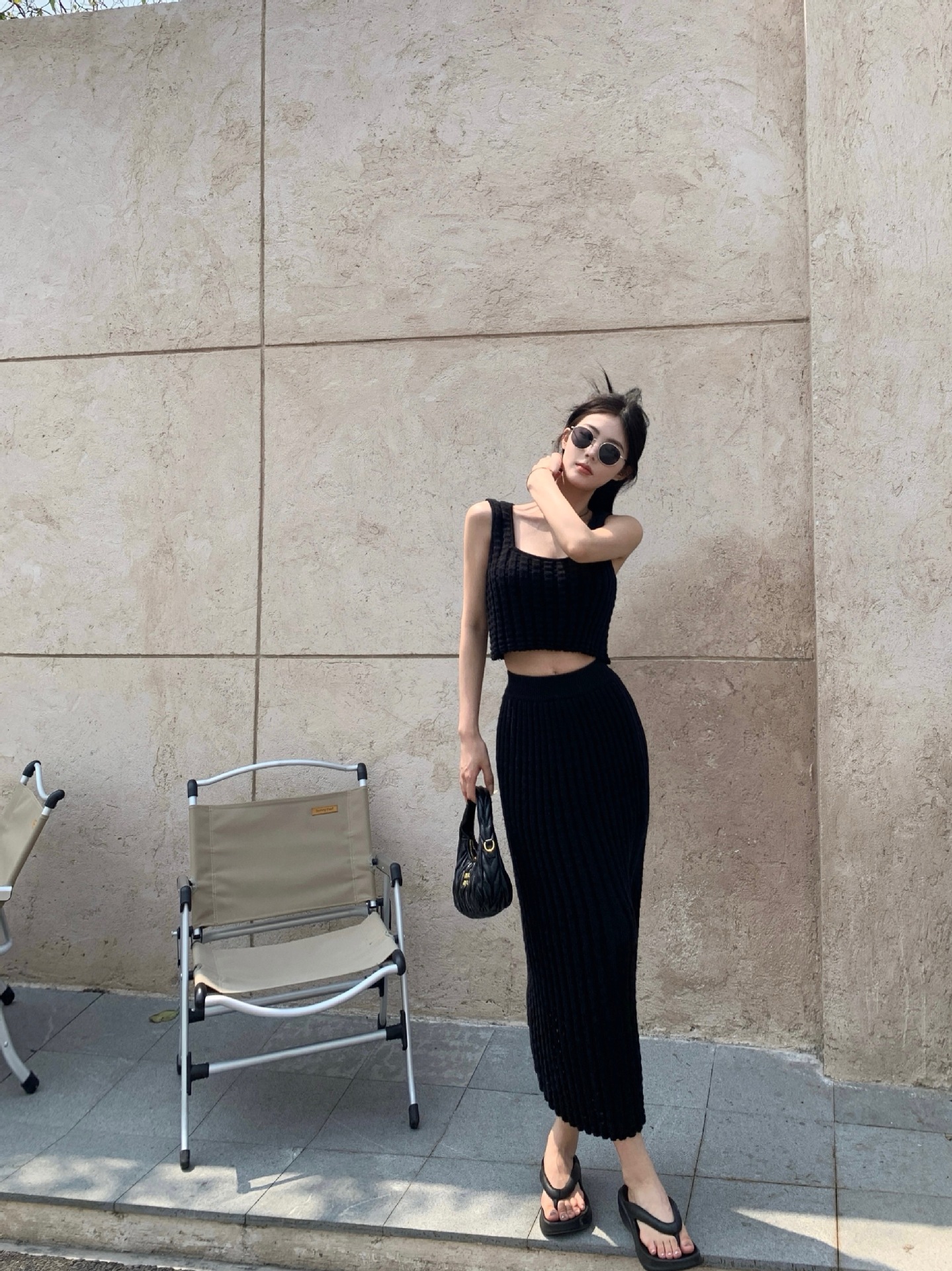 2024 패션 세트 여성의 우아한 니트 카미솔 여름 높은 허리 엉덩이 스커트 스커트 투피스 세트스토어 가기