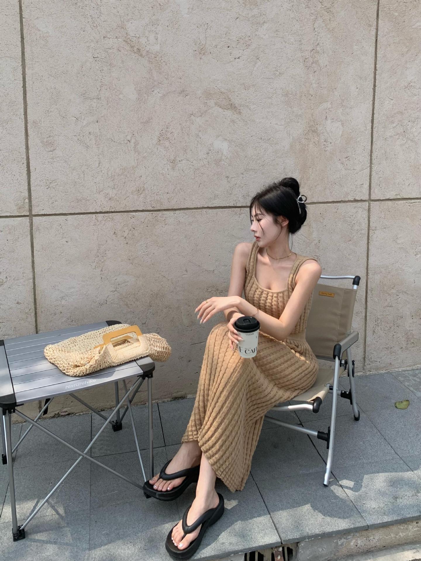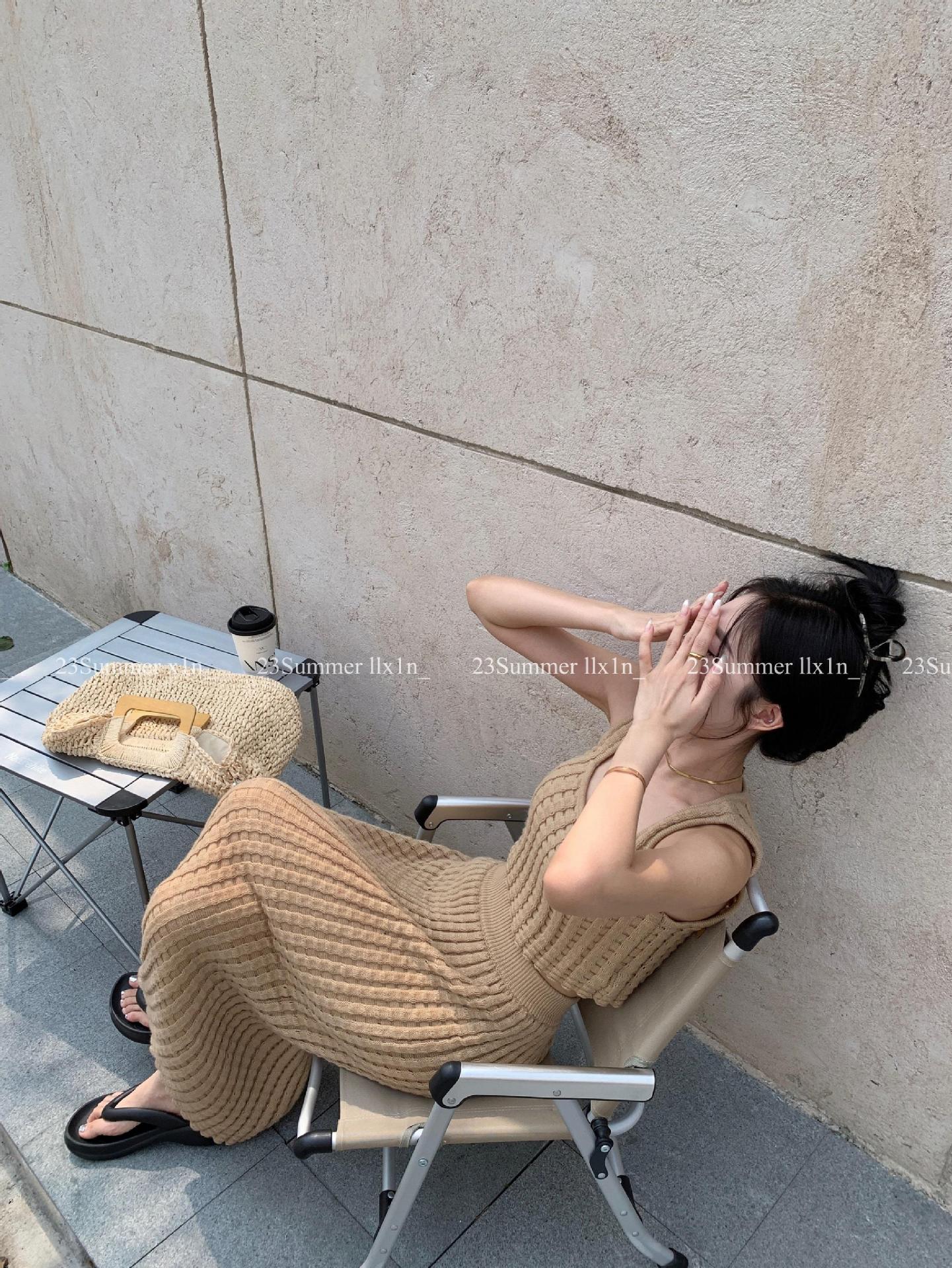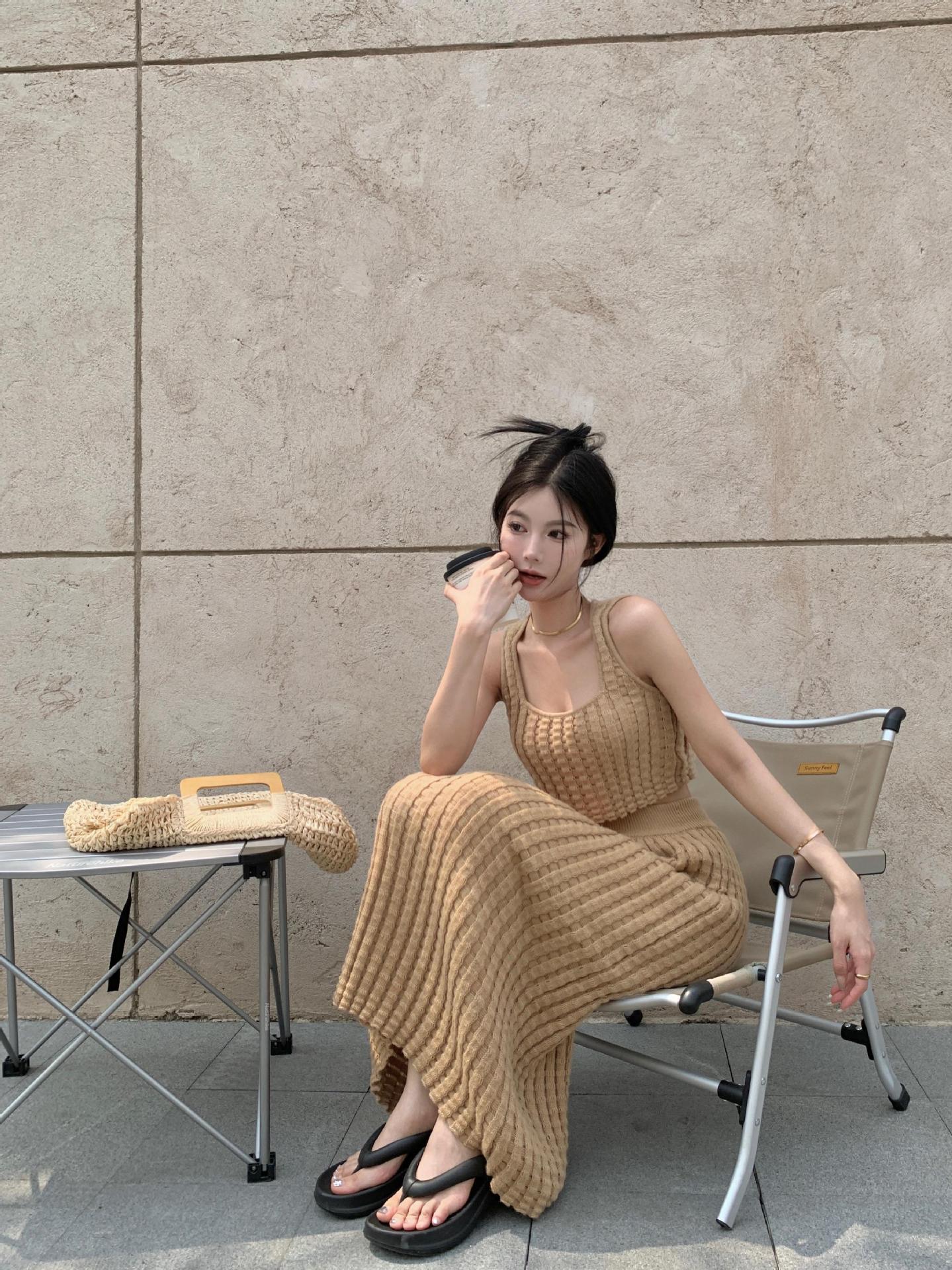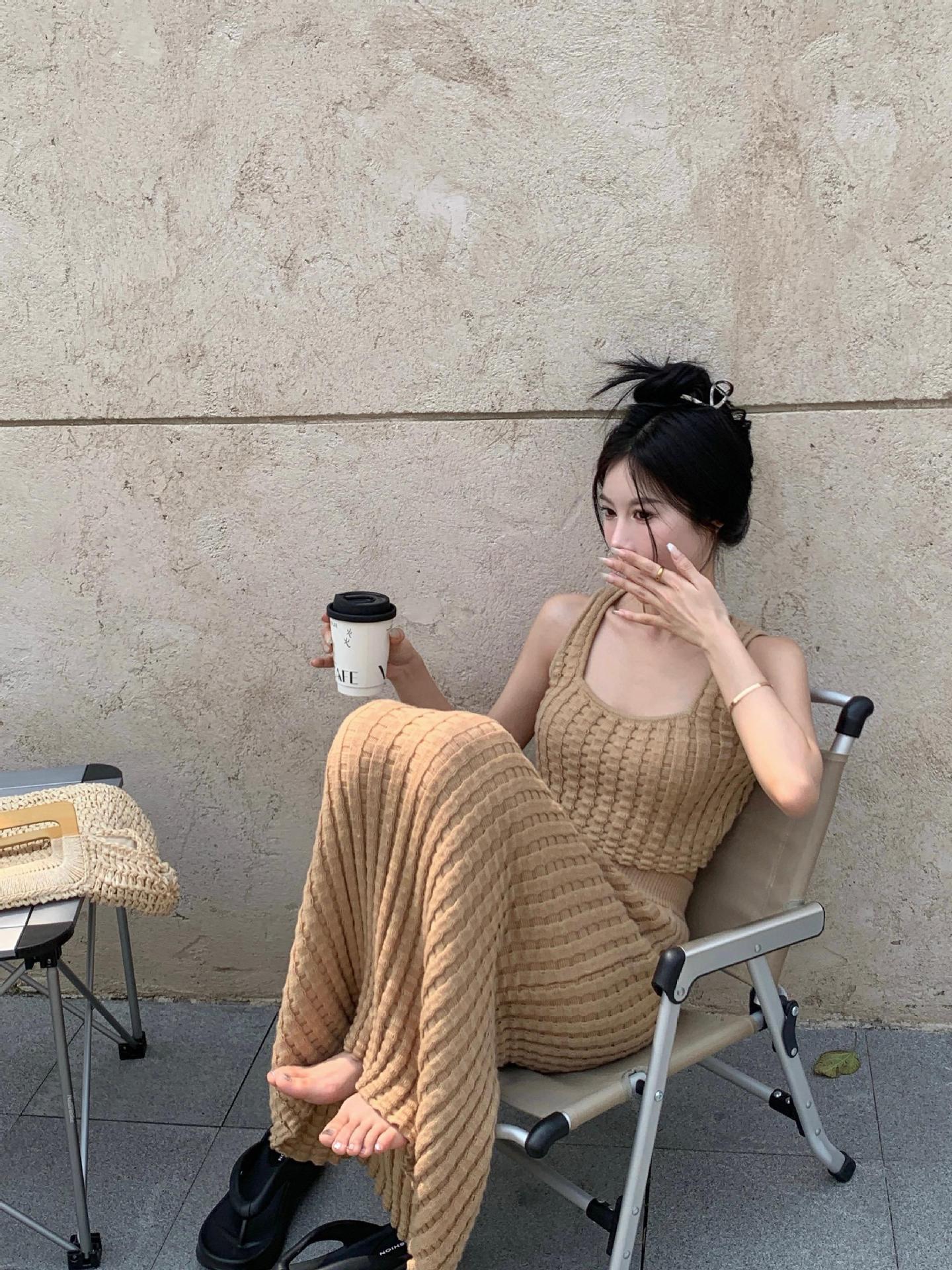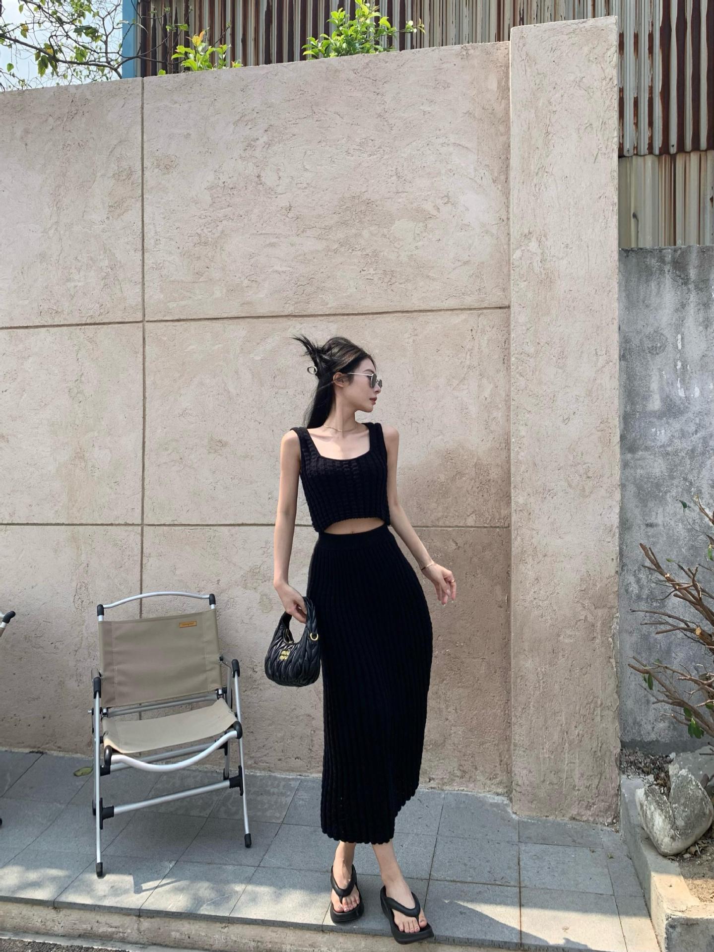 2024 패션 세트 여성의 우아한 니트 카미솔 여름 높은 허리 엉덩이 스커트 스커트 투피스 세트스토어 가기