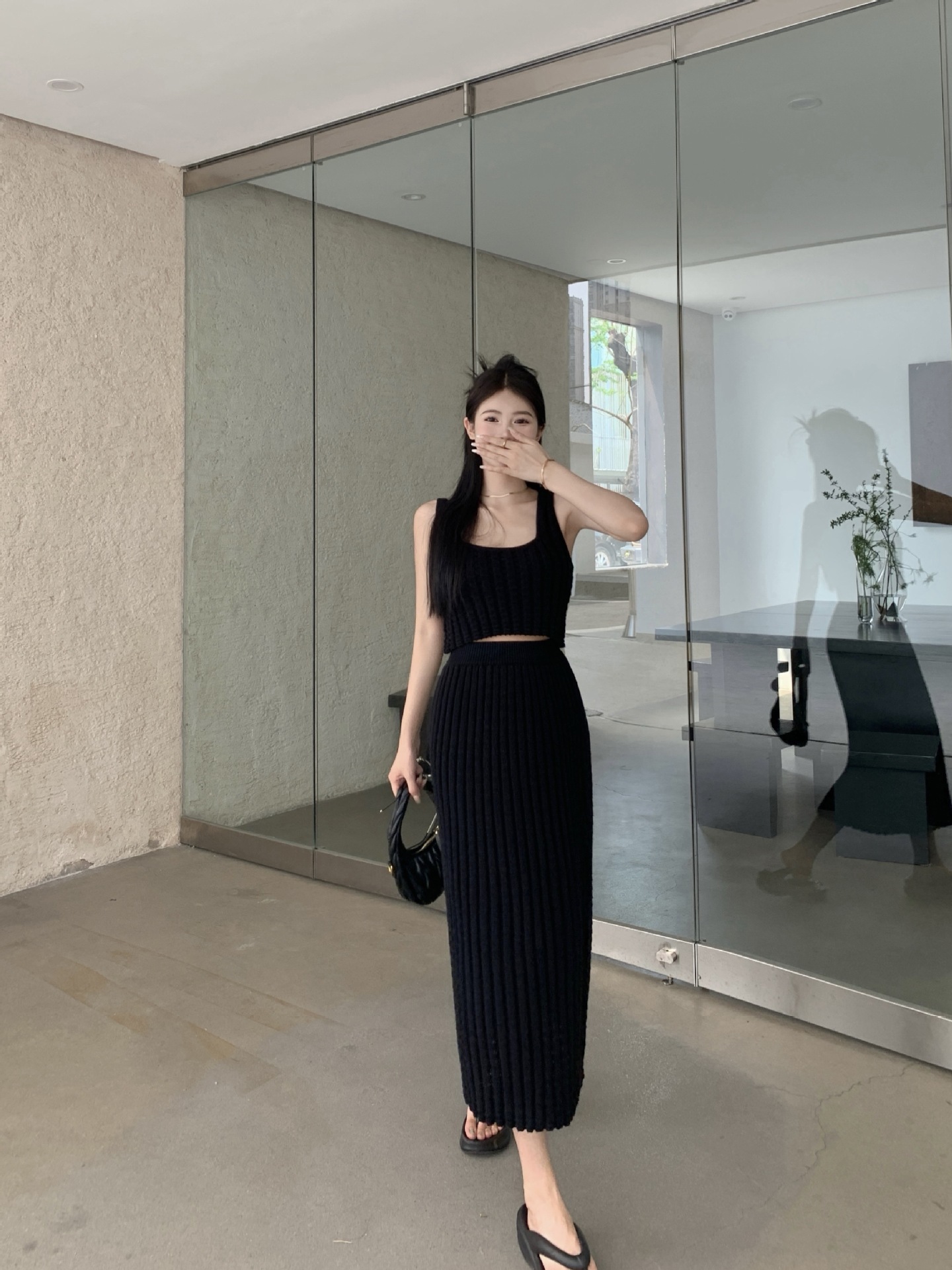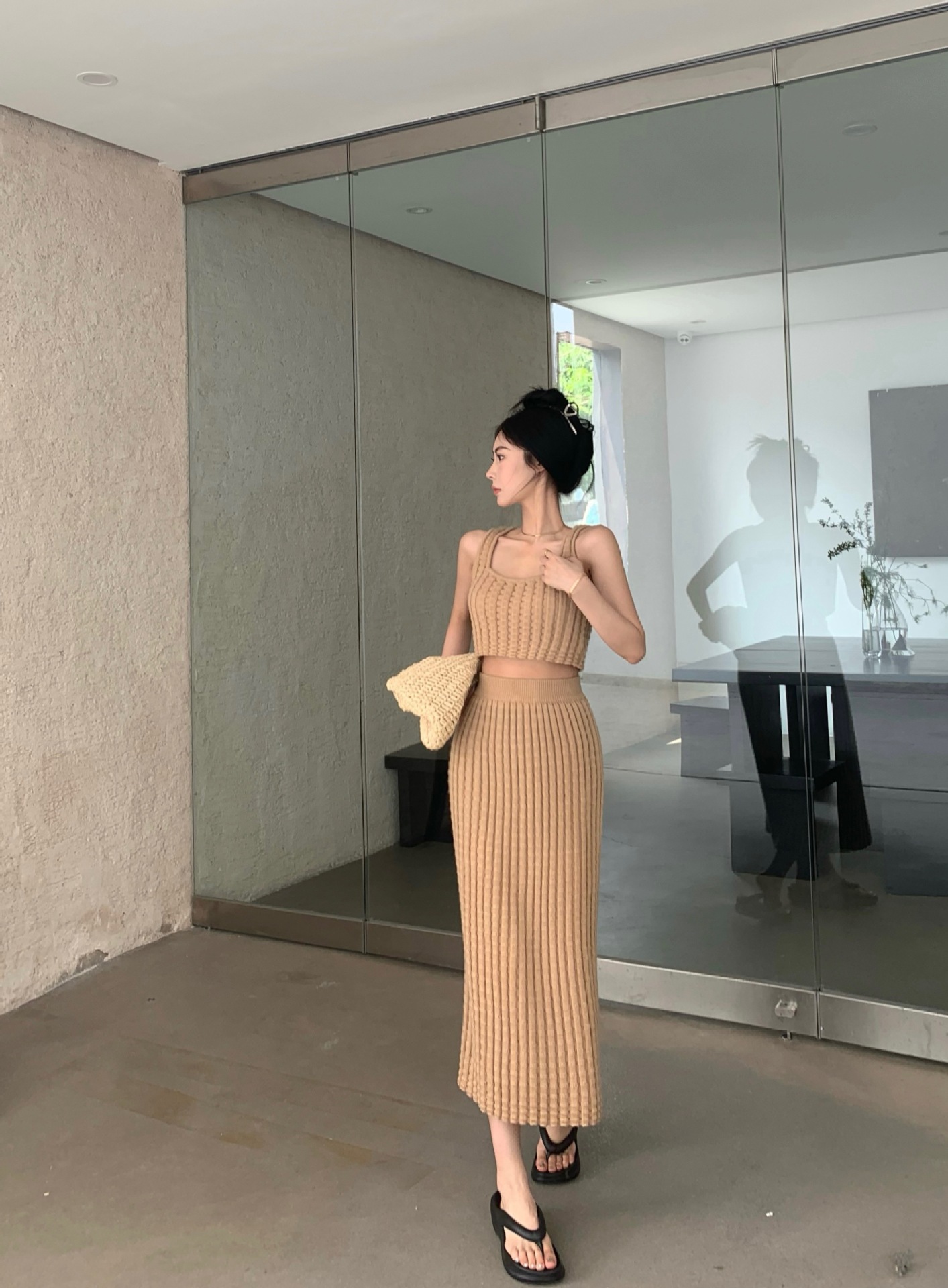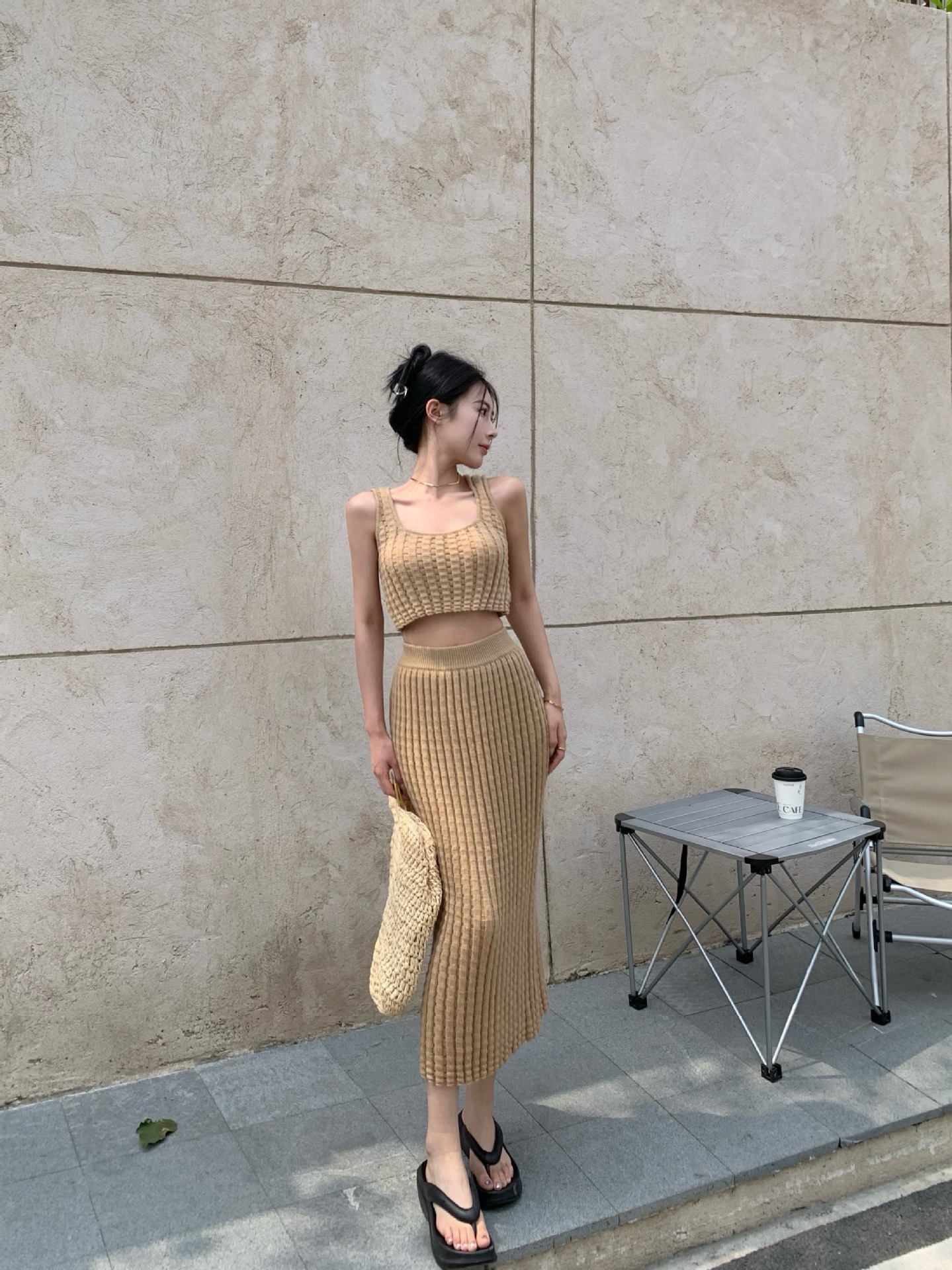 2024 패션 세트 여성의 우아한 니트 카미솔 여름 높은 허리 엉덩이 스커트 스커트 투피스 세트