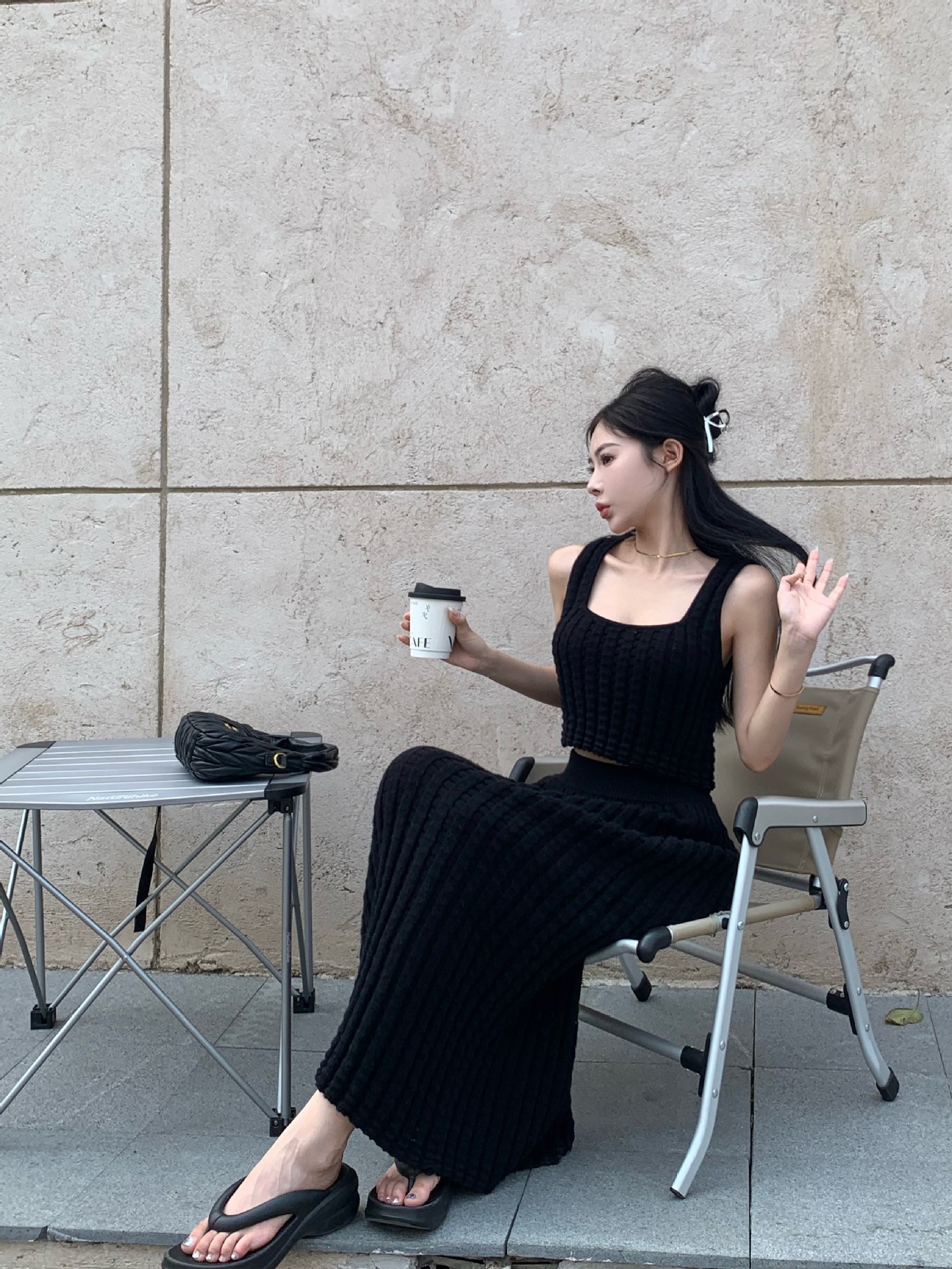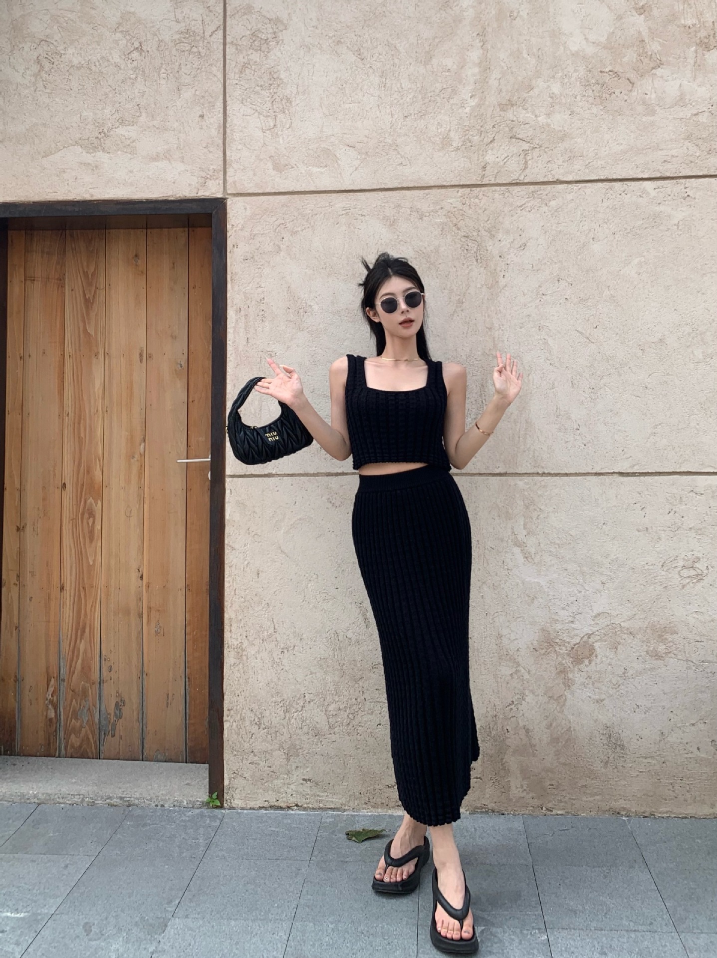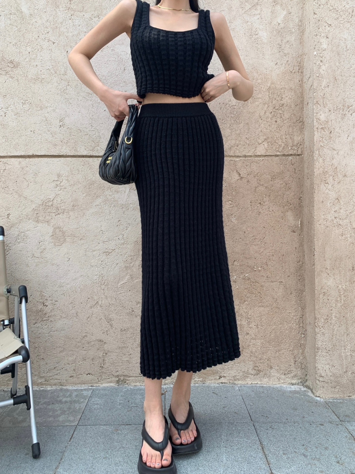 2024 패션 세트 여성의 우아한 니트 카미솔 여름 높은 허리 엉덩이 스커트 스커트 투피스 세트