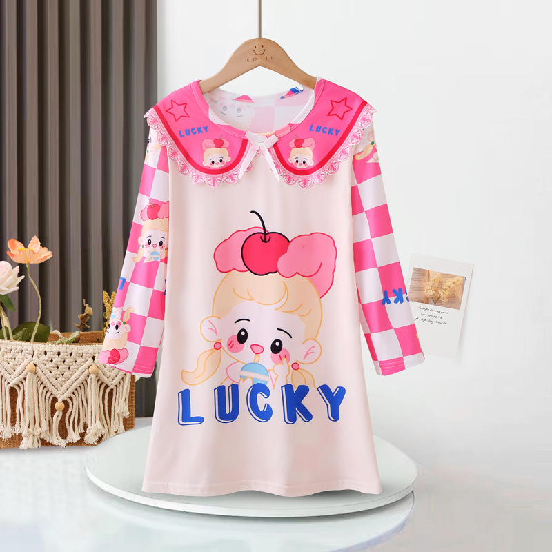 어린이 잠옷 여아 긴팔 잠옷 새 봄과 가을 큰 어린이 인형 칼라 스타일릭 여름 에어컨 홈 옷스토어 가기