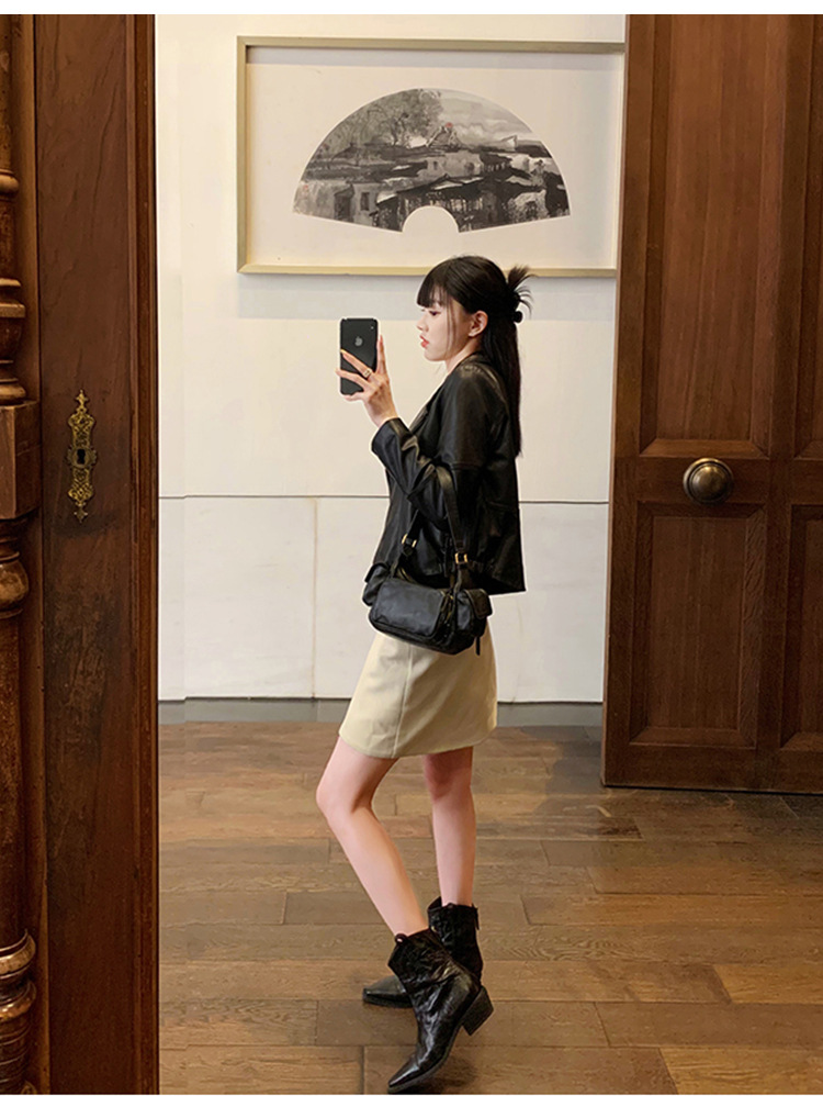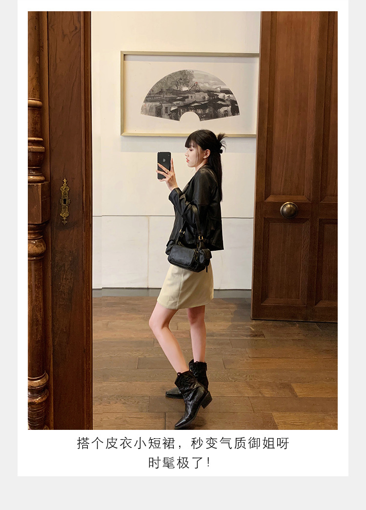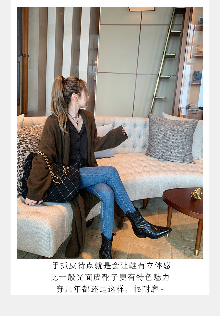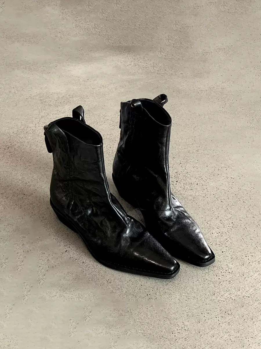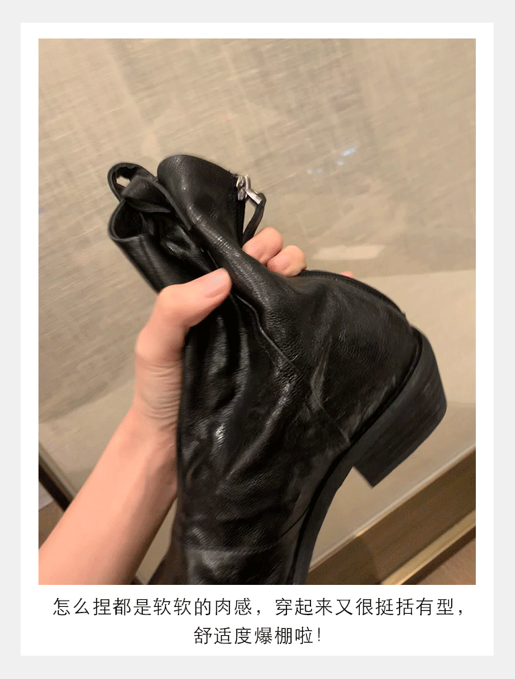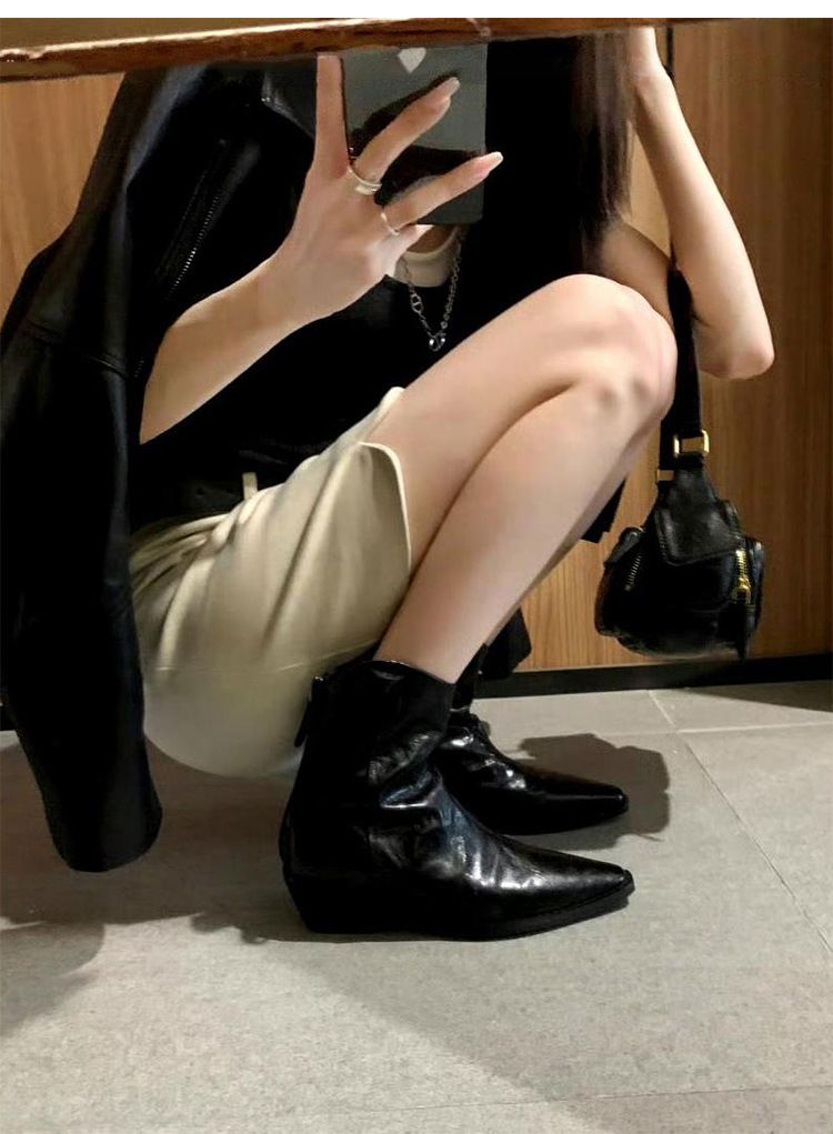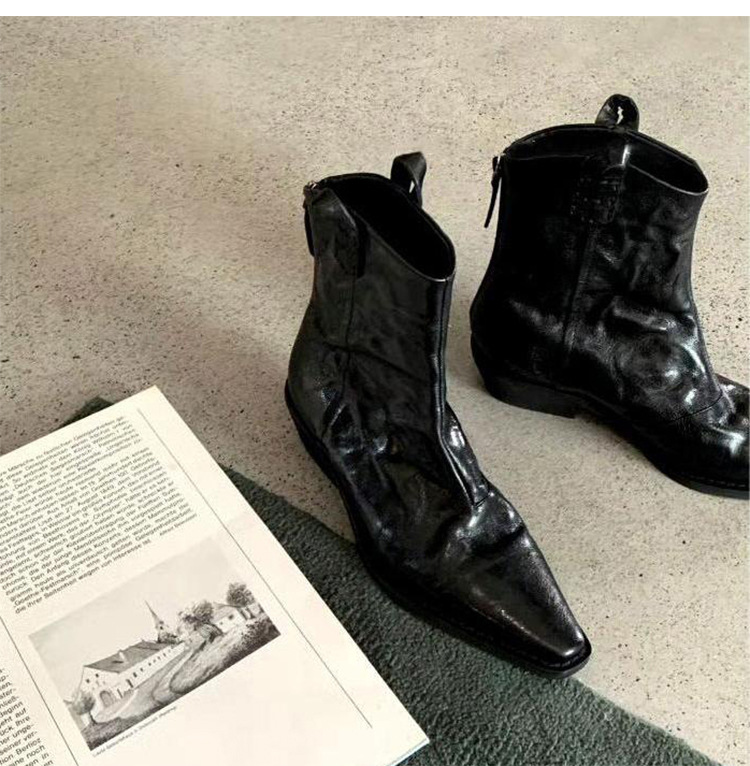소가죽 버전 ~ 천연가죽 레트로 플리츠 스퀘어토 웨스턴 카우보이부츠 미드카프 라이더부츠 여성용 두꺼운 굽 마틴 다용도