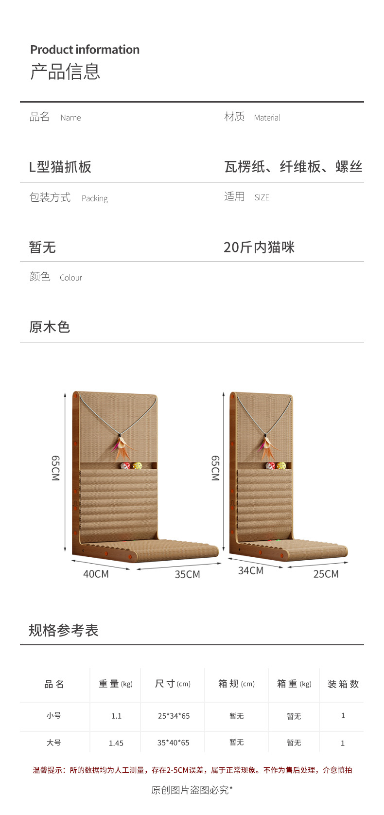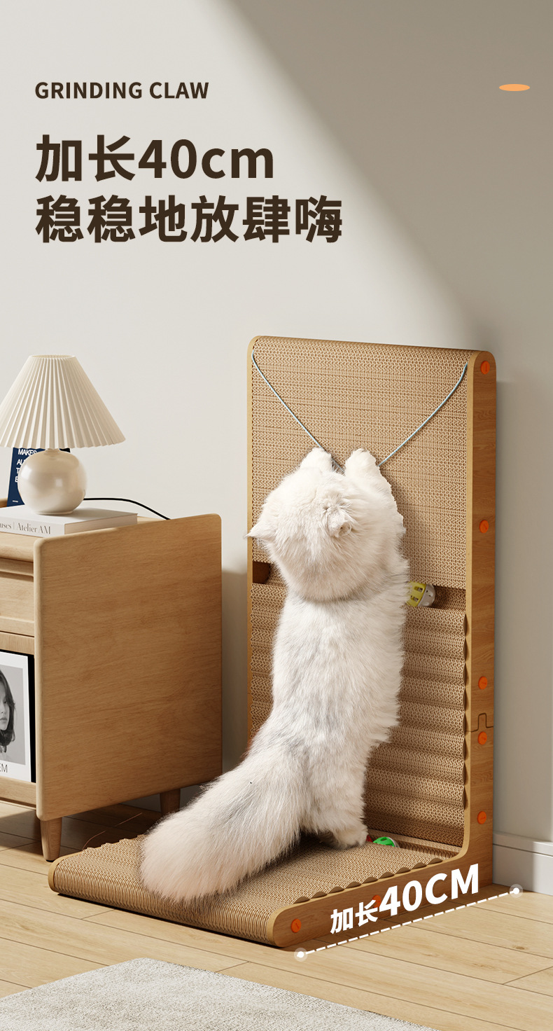 새로운 고양이 스크래치 보드 수직 골판지 벨 볼 애완 동물 제품 내마모성 확대 L 자형 고양이 발톱 보드 고양이 장난감