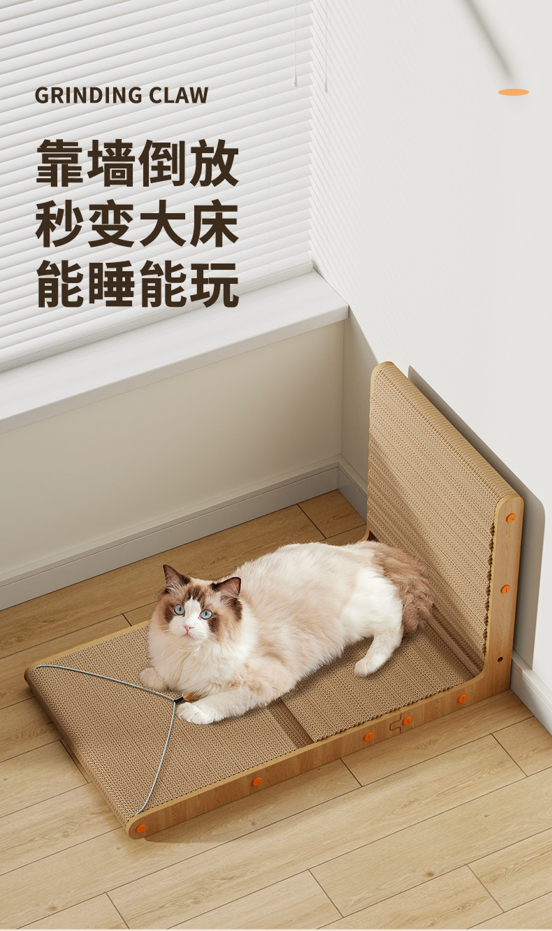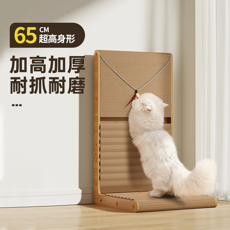 새로운 고양이 스크래치 보드 수직 골판지 벨 볼 애완 동물 제품 내마모성 확대 L 자형 고양이 발톱 보드 고양이 장난감스토어 가기