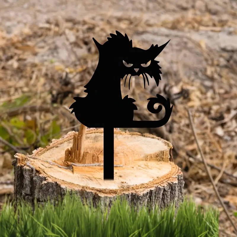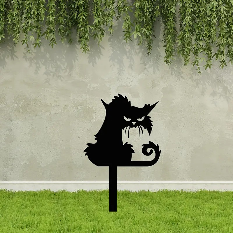 크로스 국경 금속 기발한 사악한 고양이 실루엣 정원 더미 파티오 잔디 테라스 할로윈 장식
