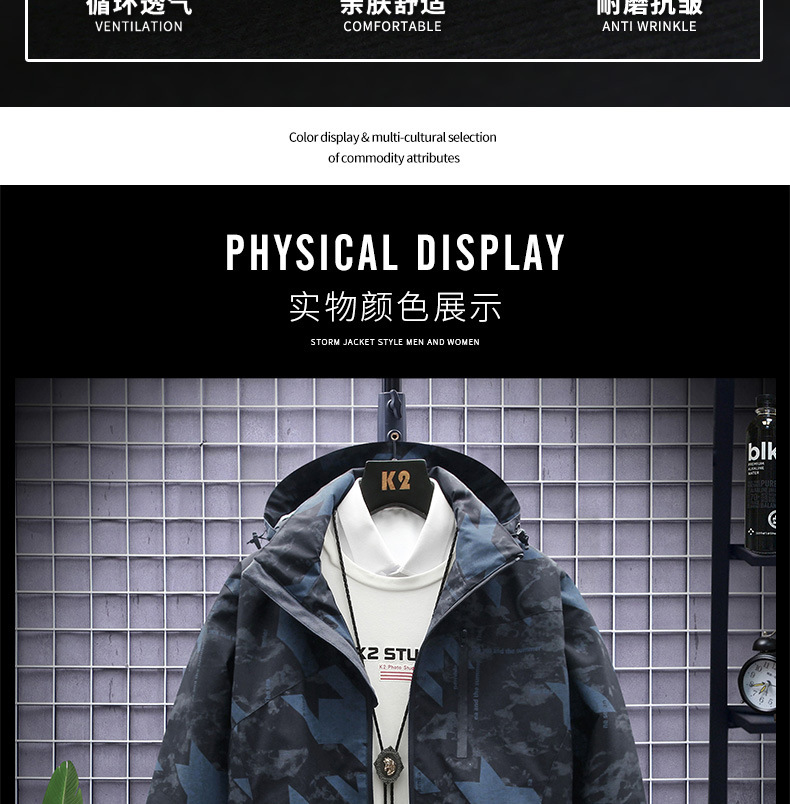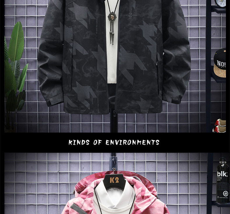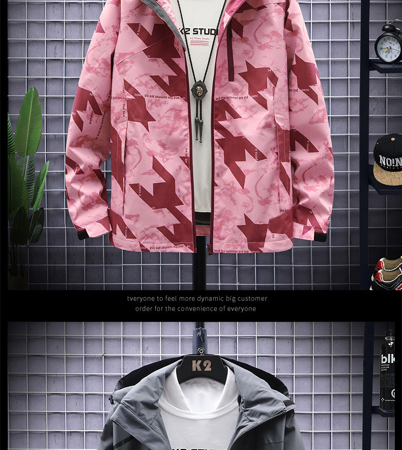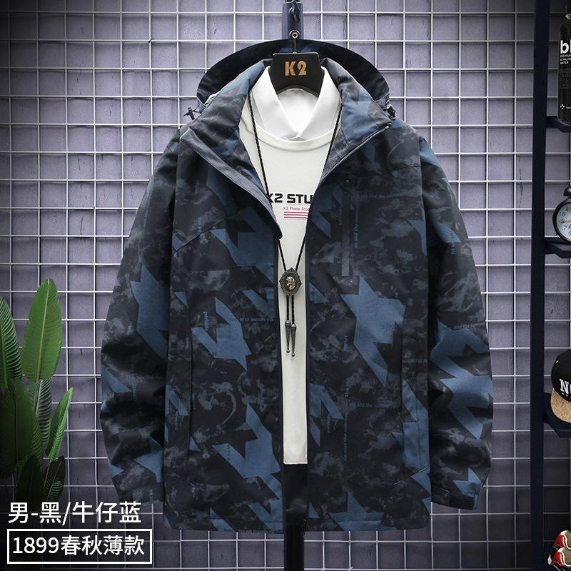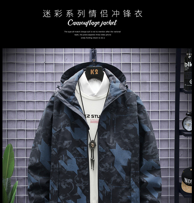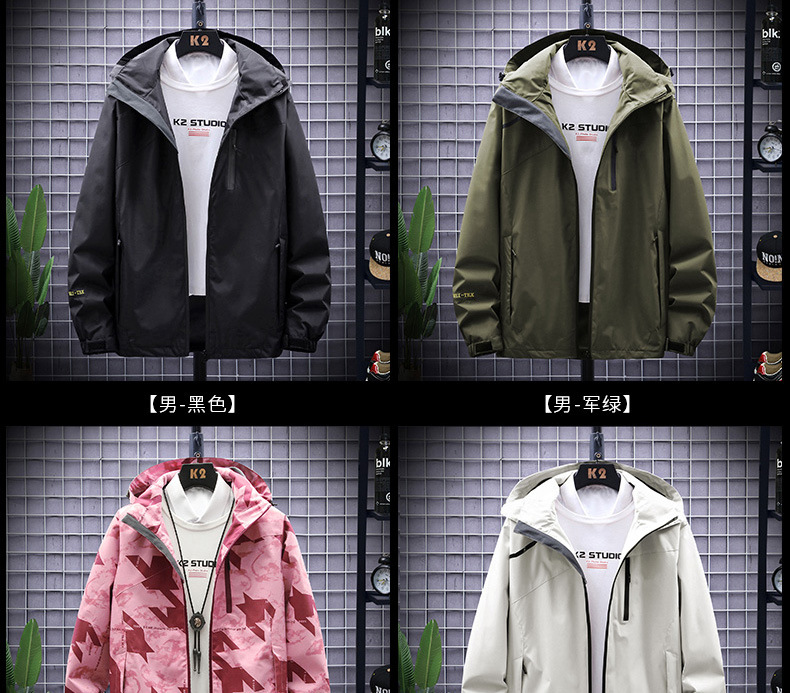 새로운 야외 캐주얼 남성 러시 의류 커플의 얇은 통기성 방풍 방수 위장 캐주얼 재킷 남성용 재킷스토어 가기