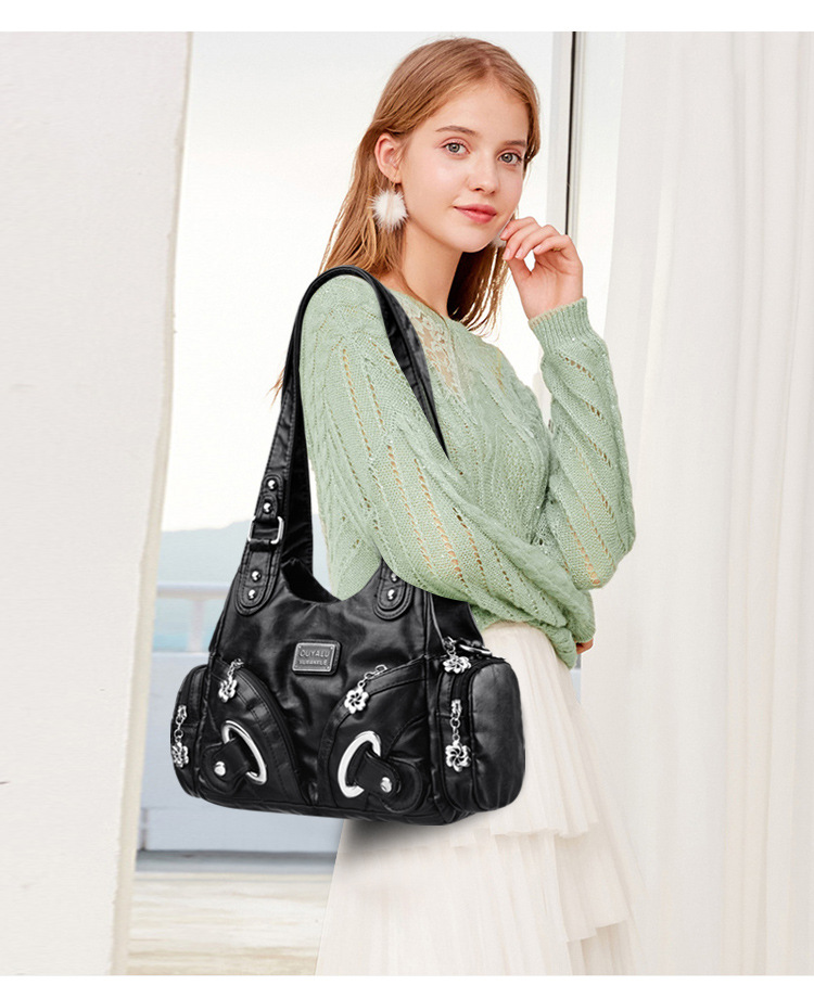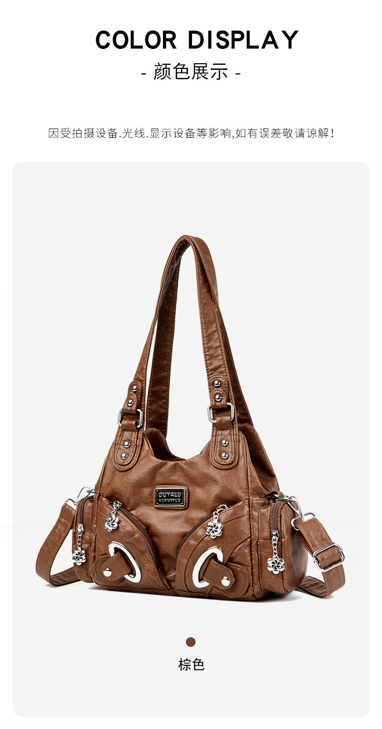 국경 간 복고풍 부드러운 가죽 오토바이 가방 2024 새로운 유럽과 미국 패션 대각선 어깨 가방 아마존 품질 여성 가방 어깨스토어 가기