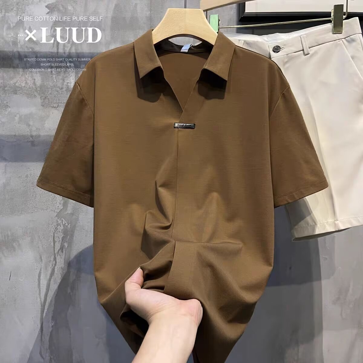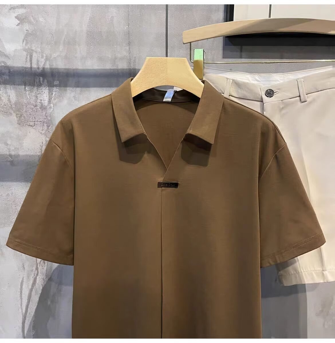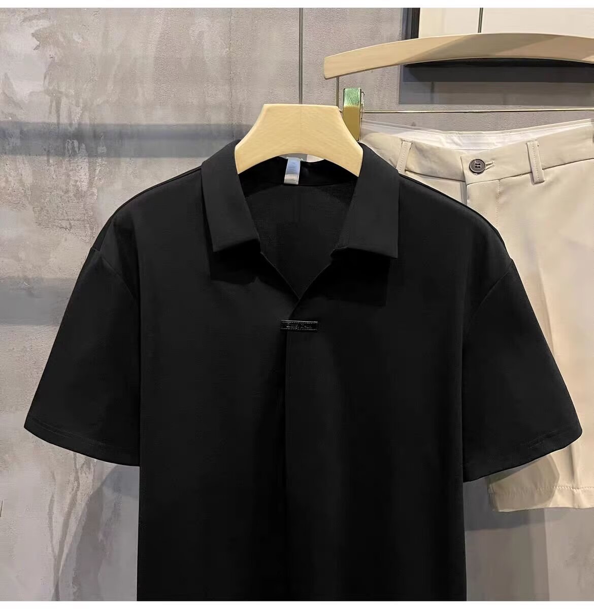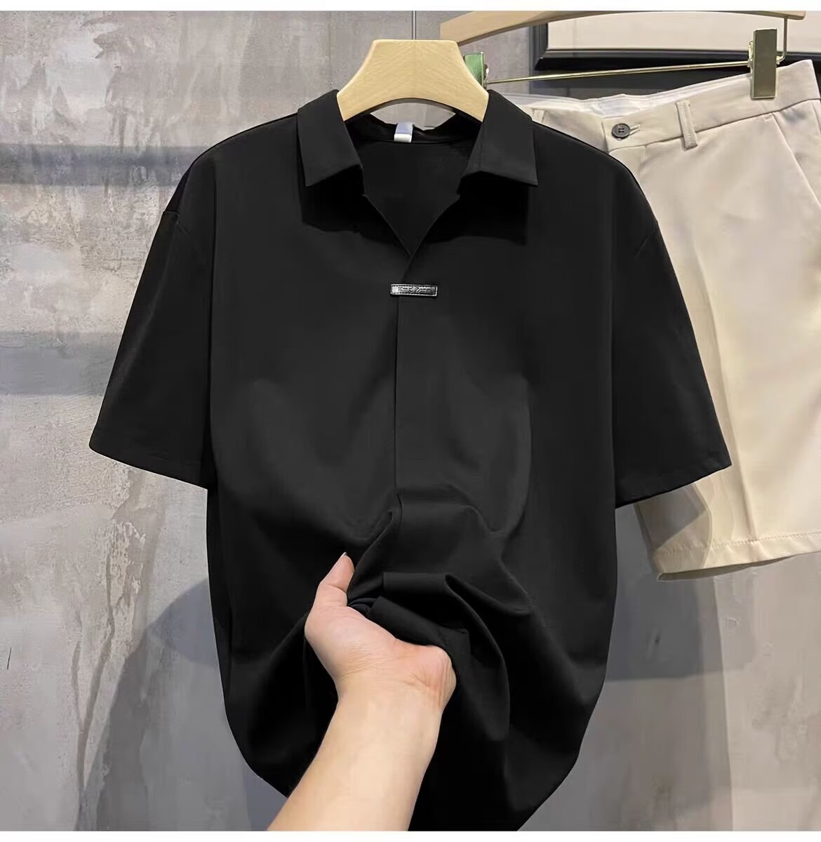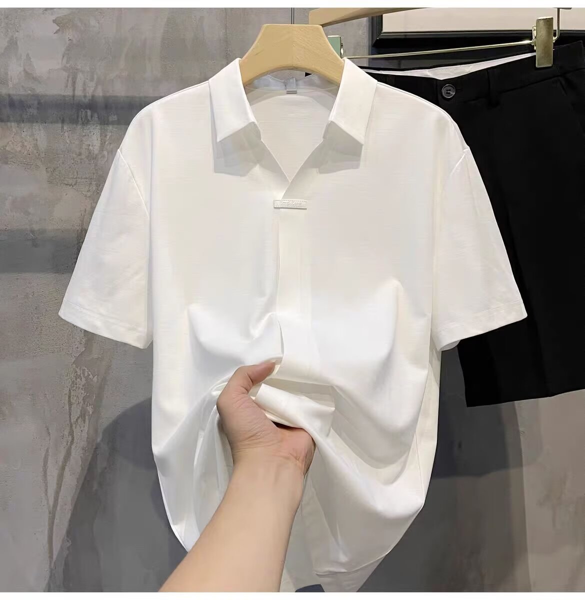 하이 엔드 아이스 실크 반팔 남자의 폴로 셔츠 새로운 스타일 남자의 2024 새로운 여름 얇은 V 넥 파올로 셔츠스토어 가기