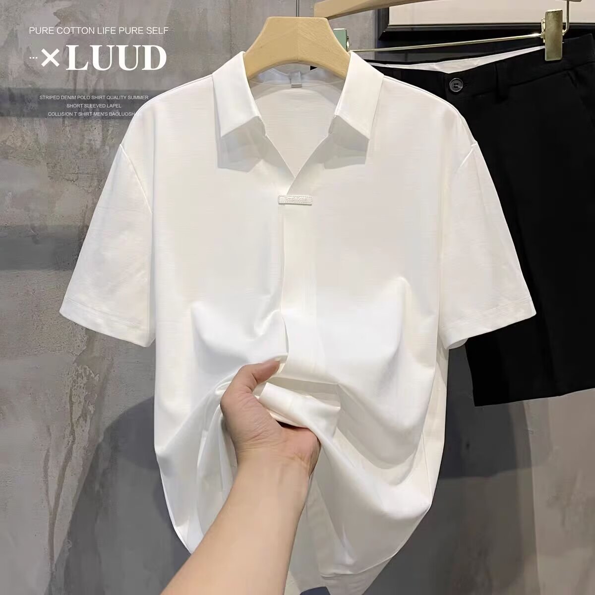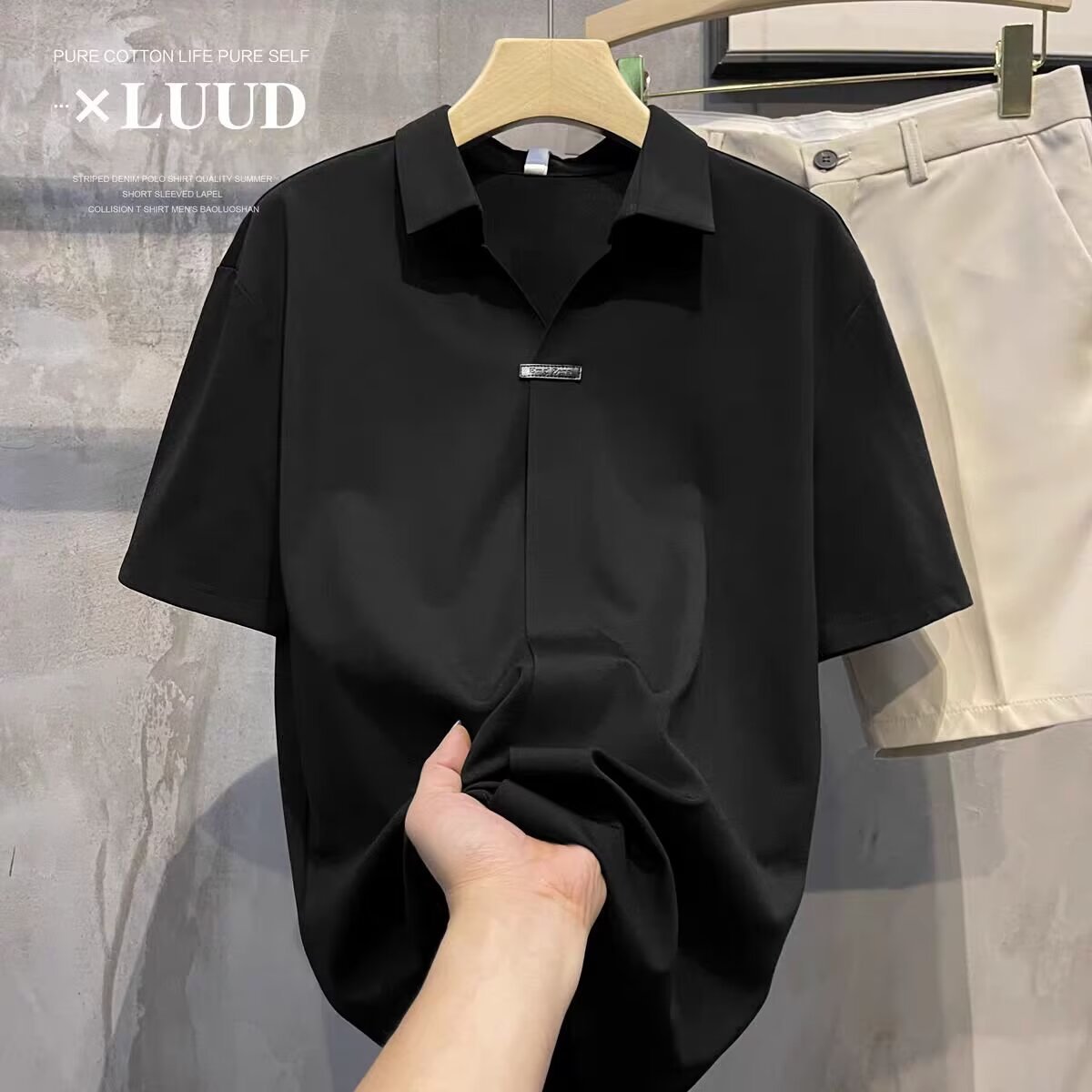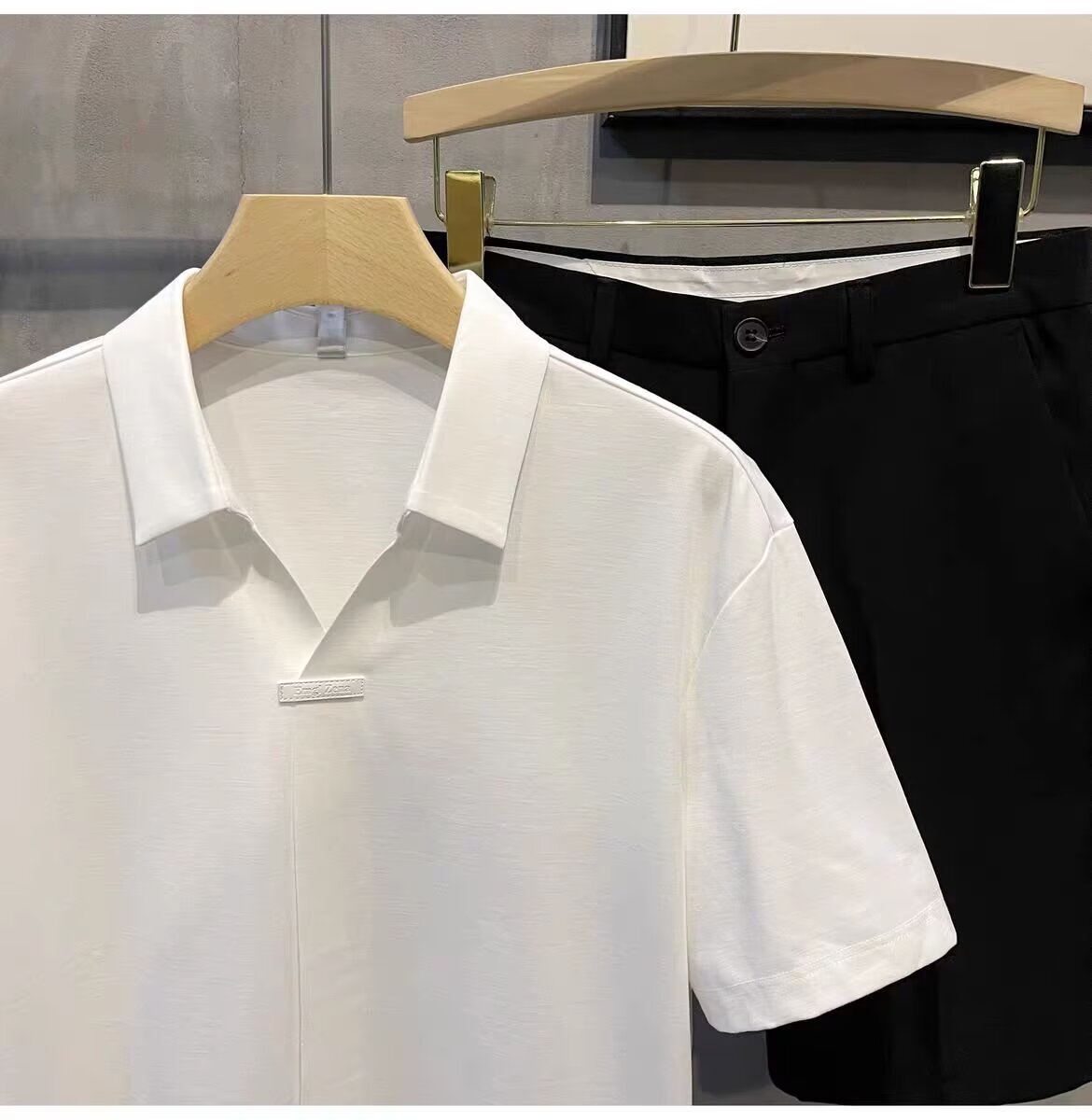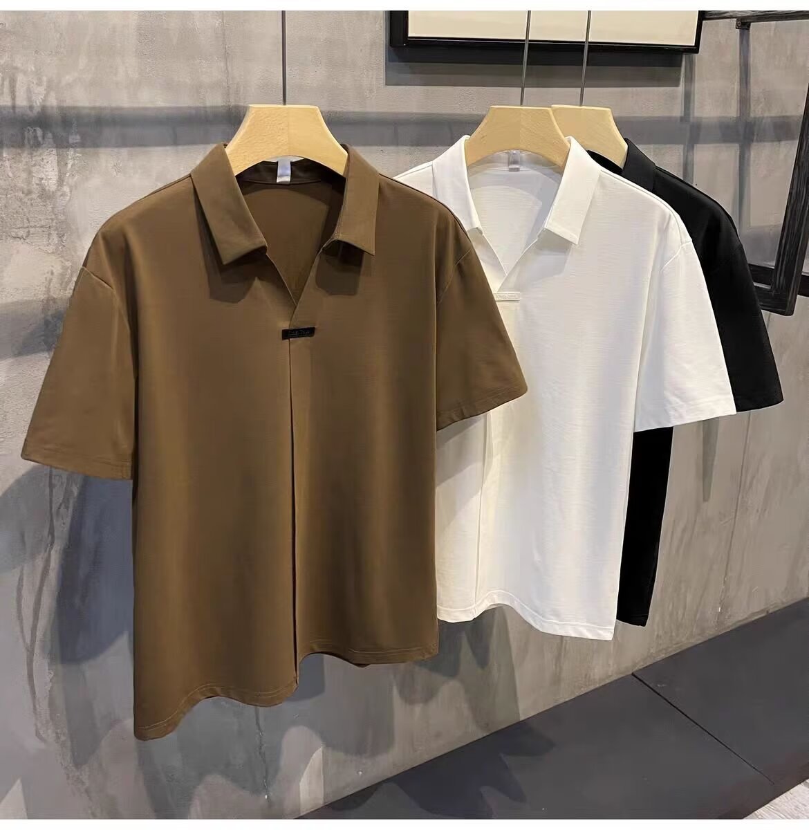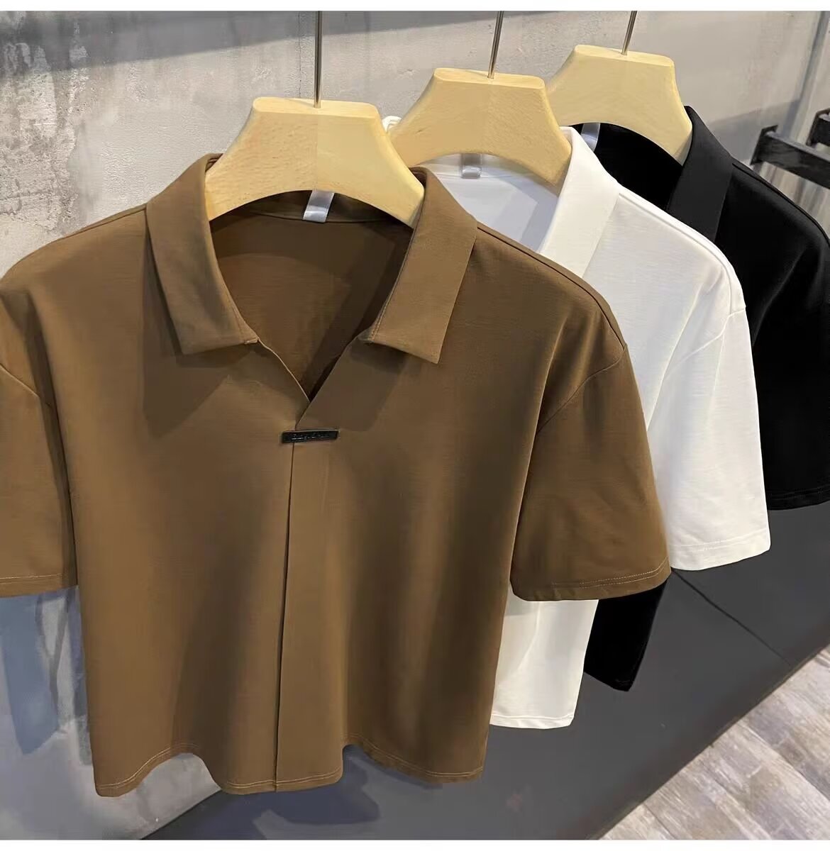 하이 엔드 아이스 실크 반팔 남자의 폴로 셔츠 새로운 스타일 남자의 2024 새로운 여름 얇은 V 넥 파올로 셔츠스토어 가기