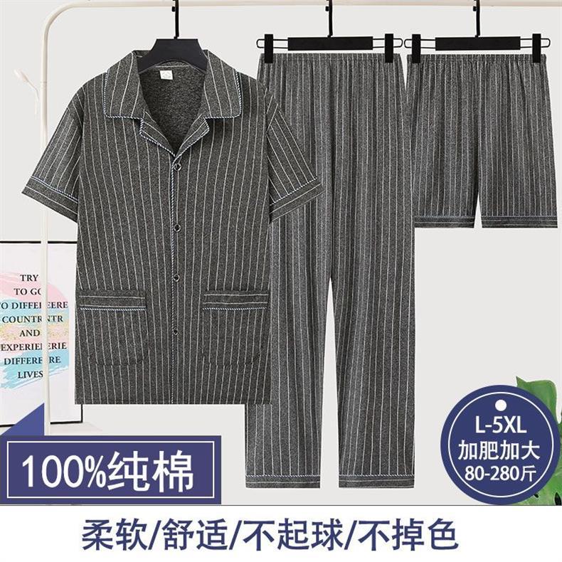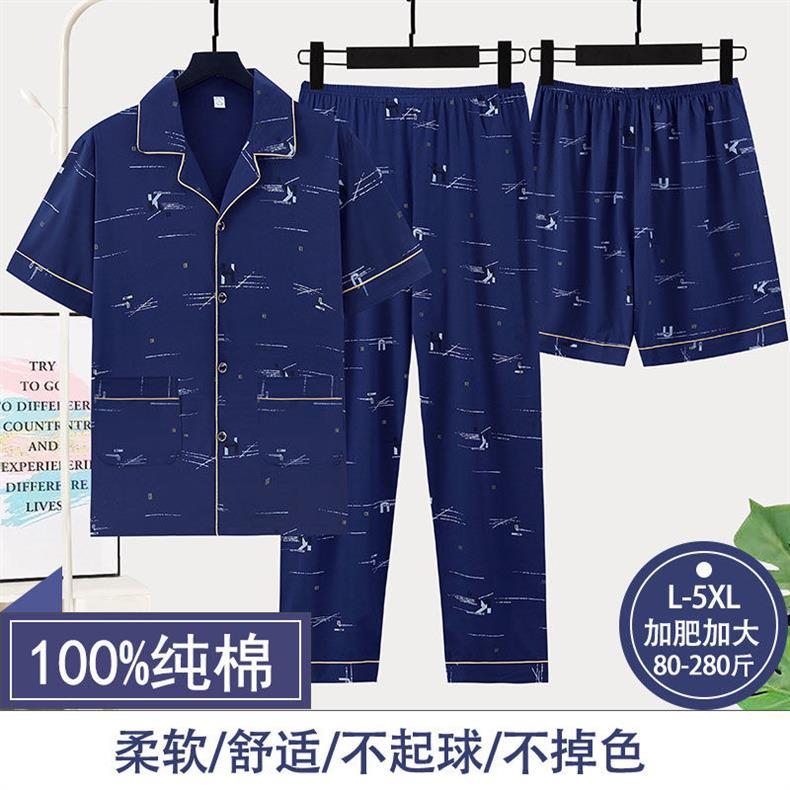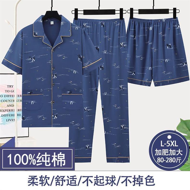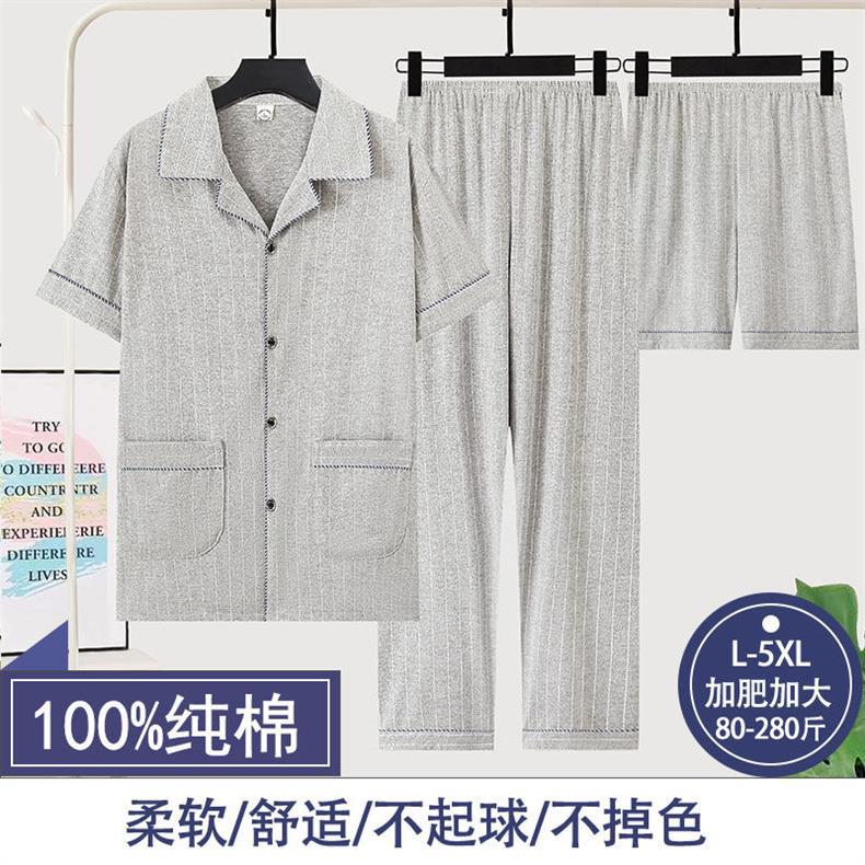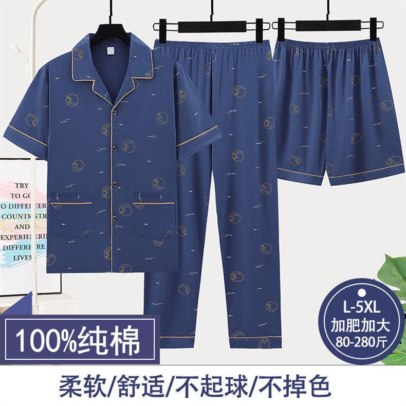 순면 3 조각 세트 남성 잠옷 여름 반바지 반바지 얇은 플러스 사이즈 반바지 홈 의류 세트스토어 가기