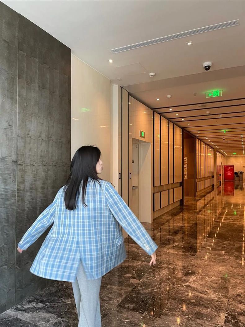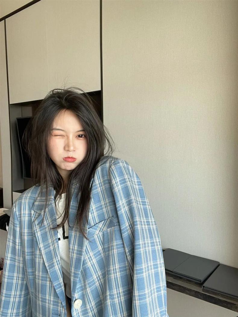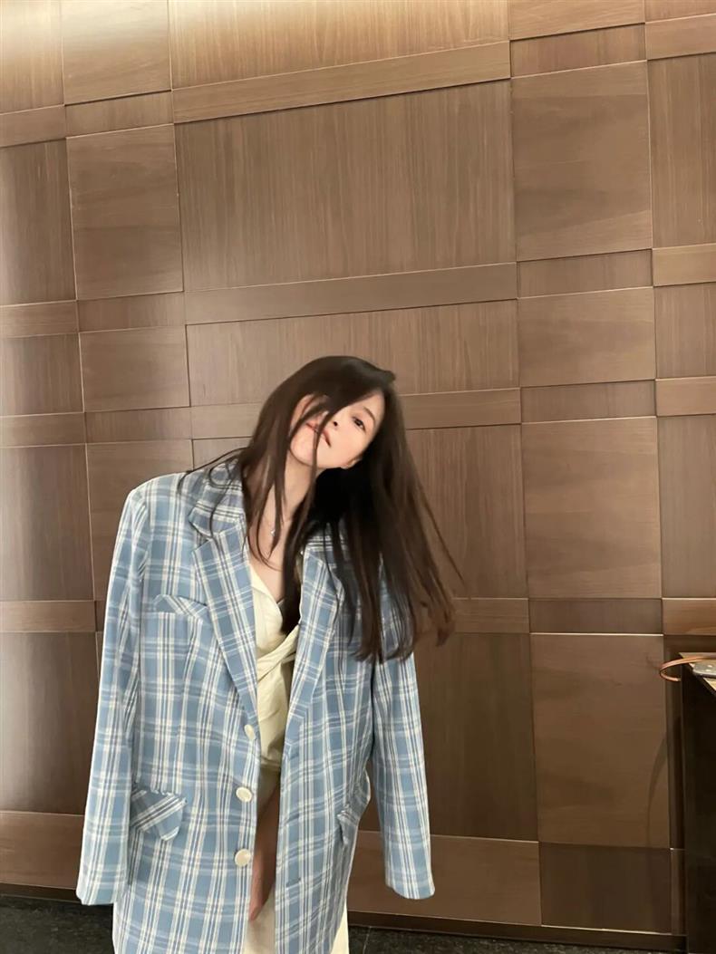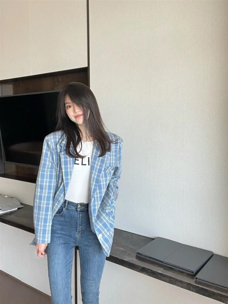 YT21278 봄 2024 새로운 디자인 센스 틈새 시크 탑 한풍 세련된 블루 격자 무늬 세트스토어 가기