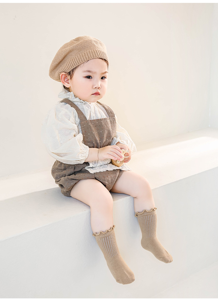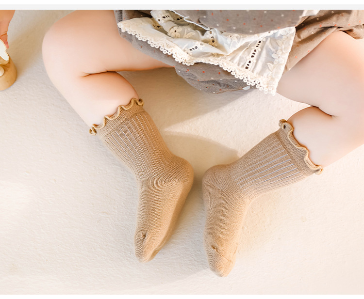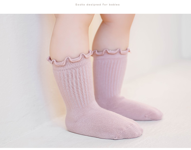 뼈없는 가을과 겨울 아기 양말 코튼 신생아 유아 양말 단색 나무 귀 가장자리 느슨한 다리스토어 가기
