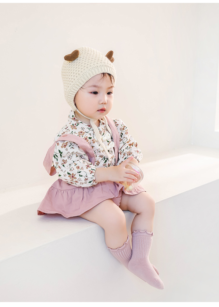 뼈없는 가을과 겨울 아기 양말 코튼 신생아 유아 양말 단색 나무 귀 가장자리 느슨한 다리