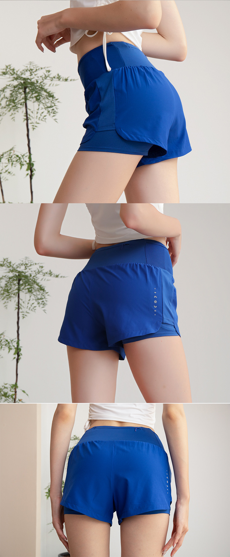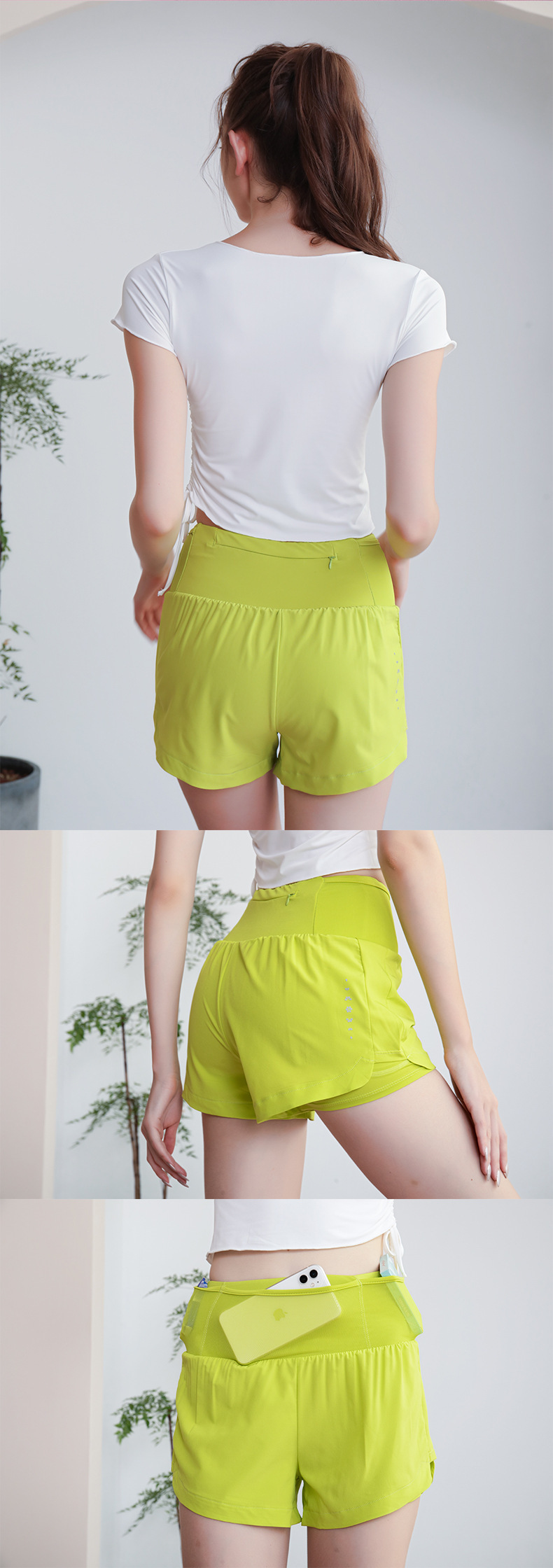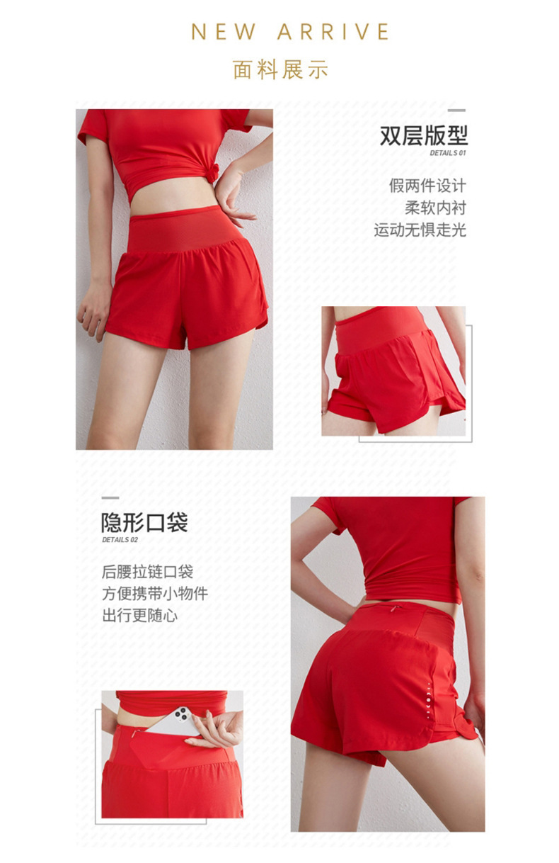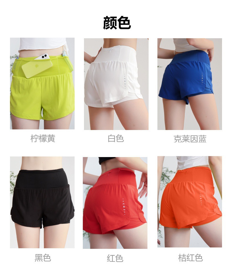 跨境运动短裤女 速干假两件多袋瑜伽短裤