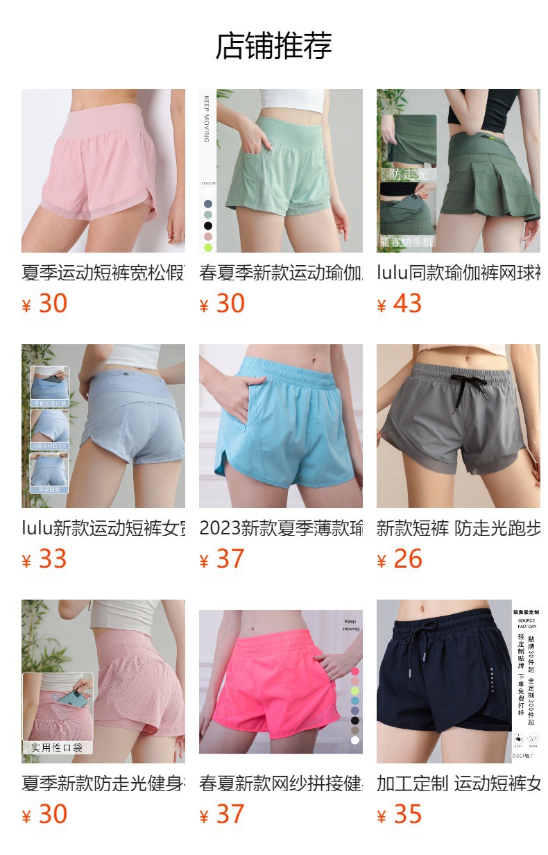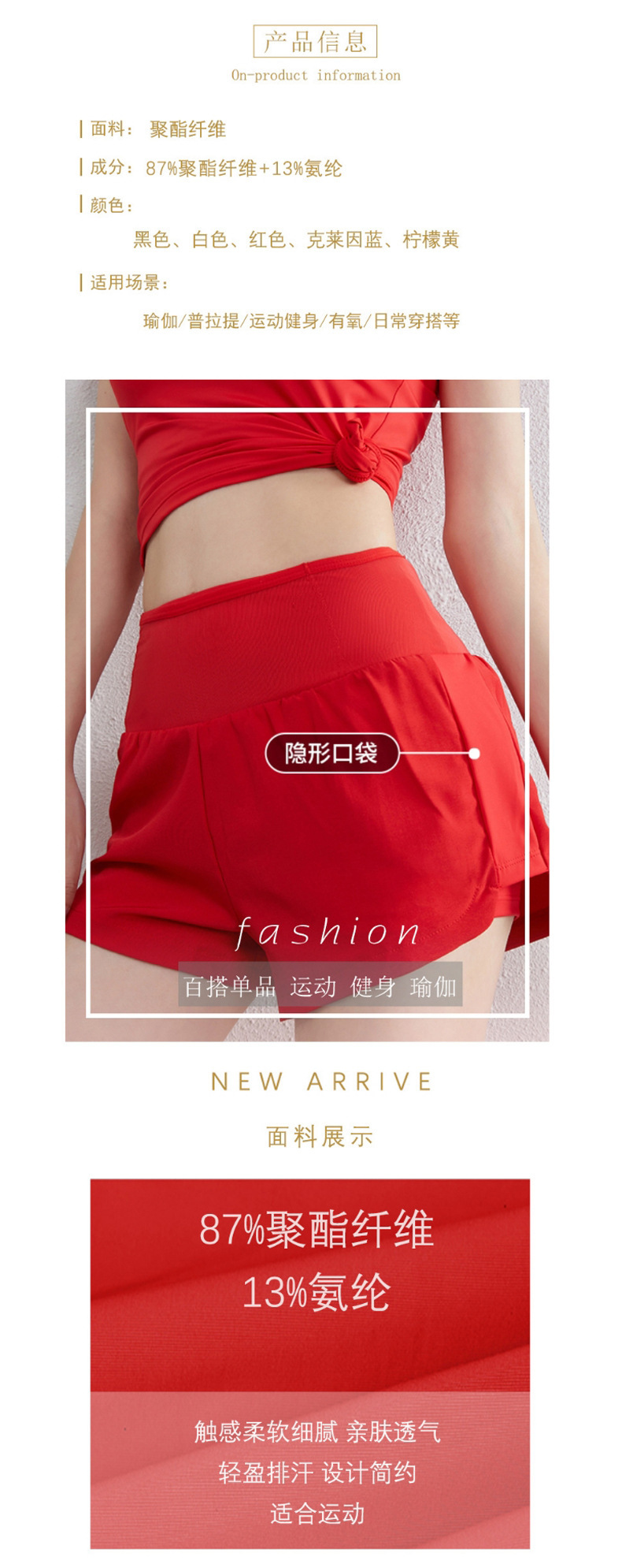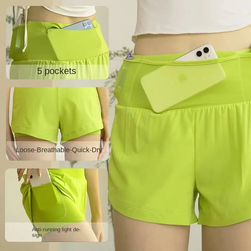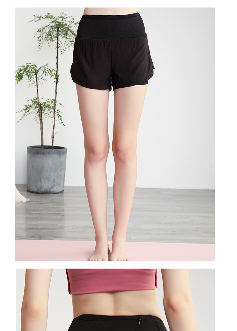 跨境运动短裤女 速干假两件多袋瑜伽短裤