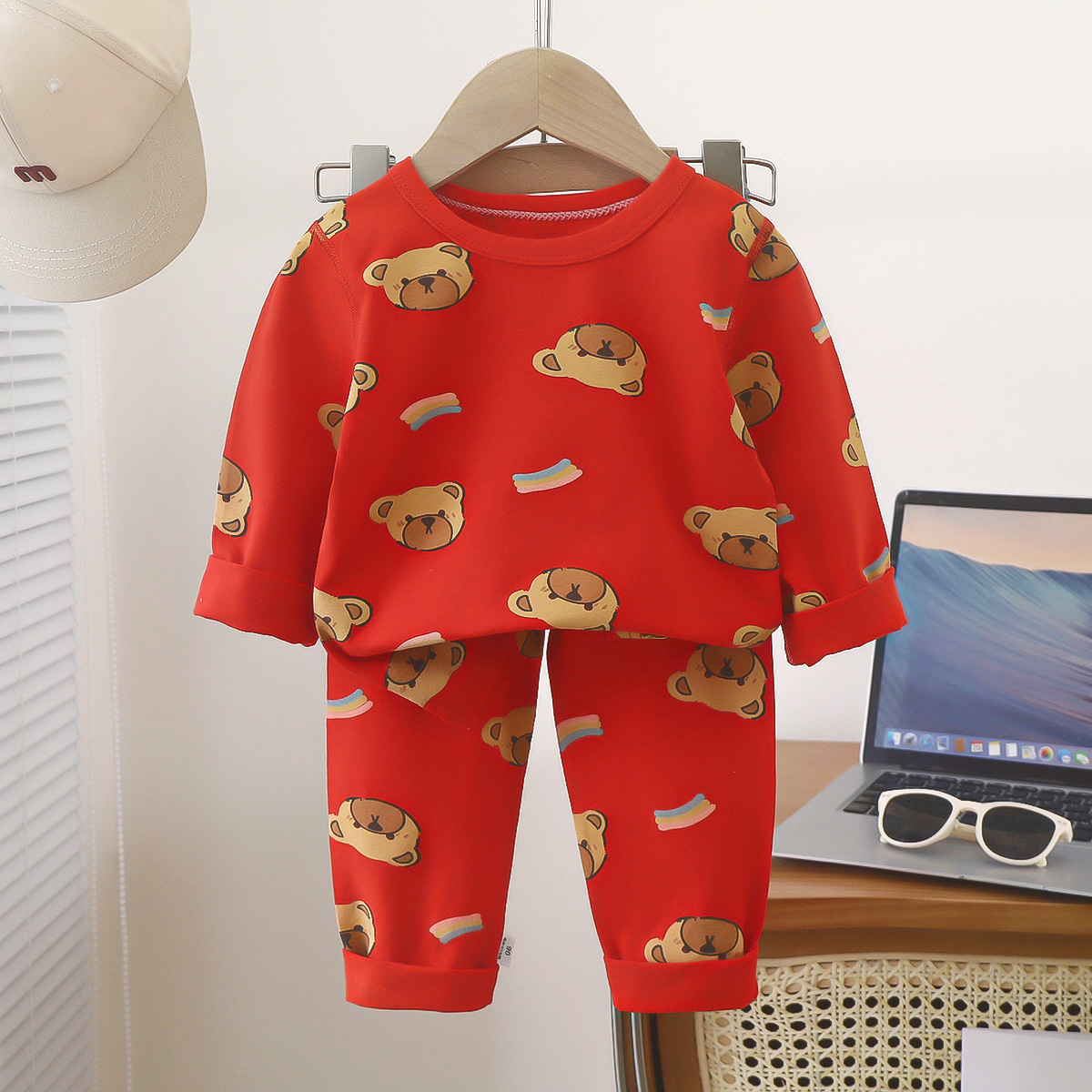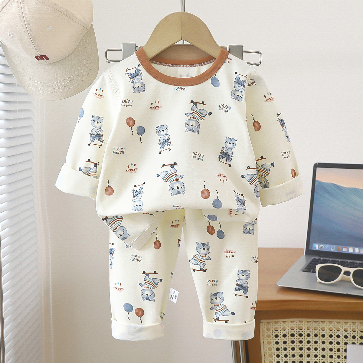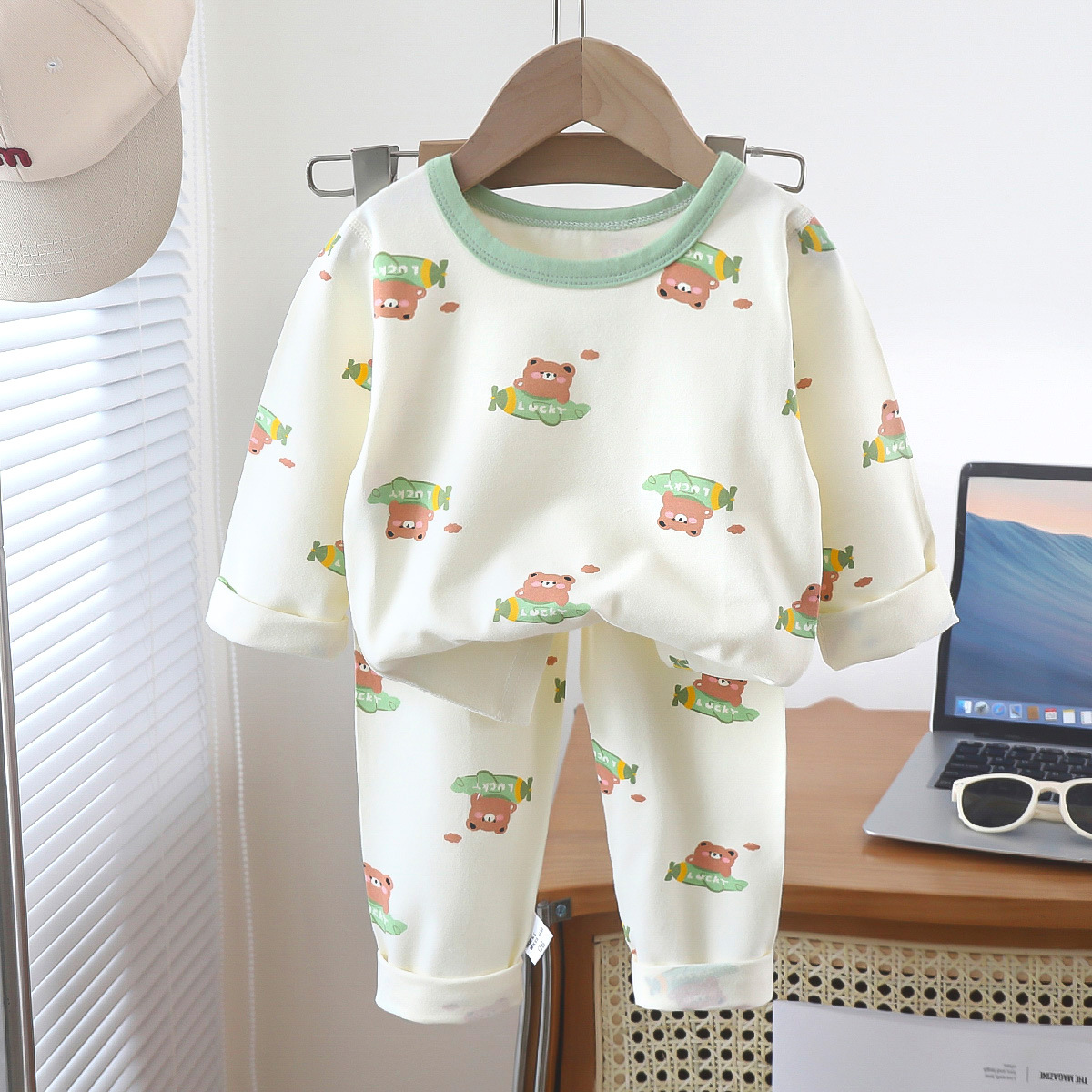 봄과 가을 어린이 세트 면 뼈없는 라이크라 소년의 가을 옷 가을 바지 파자마 아기 홈 옷스토어 가기