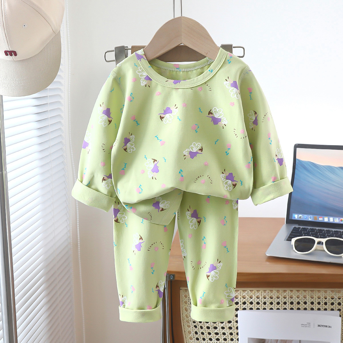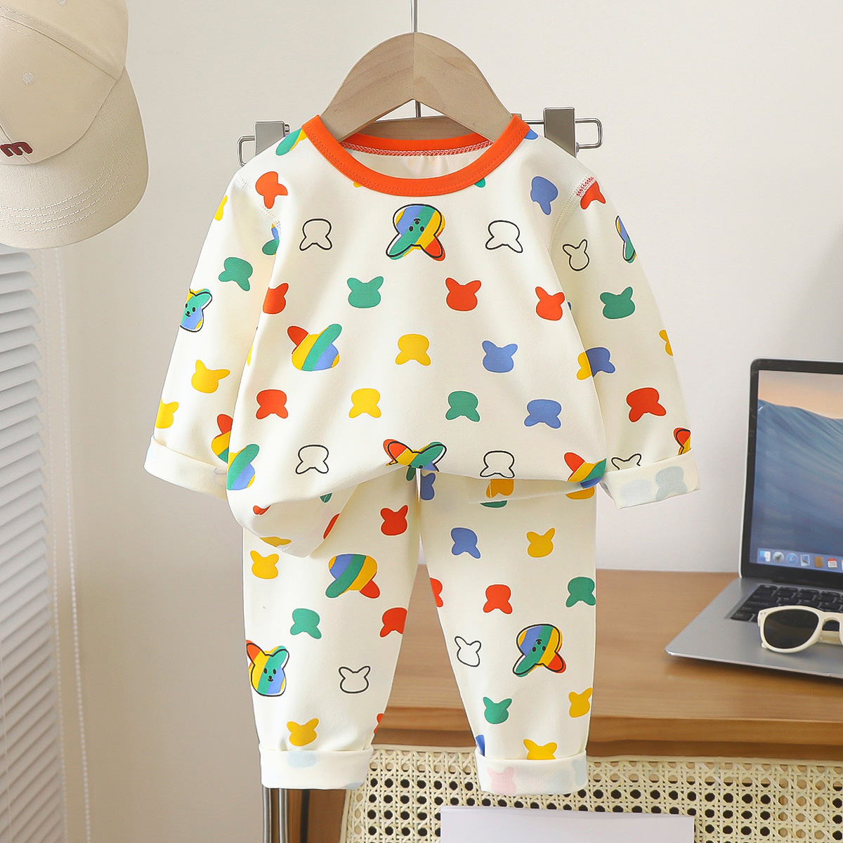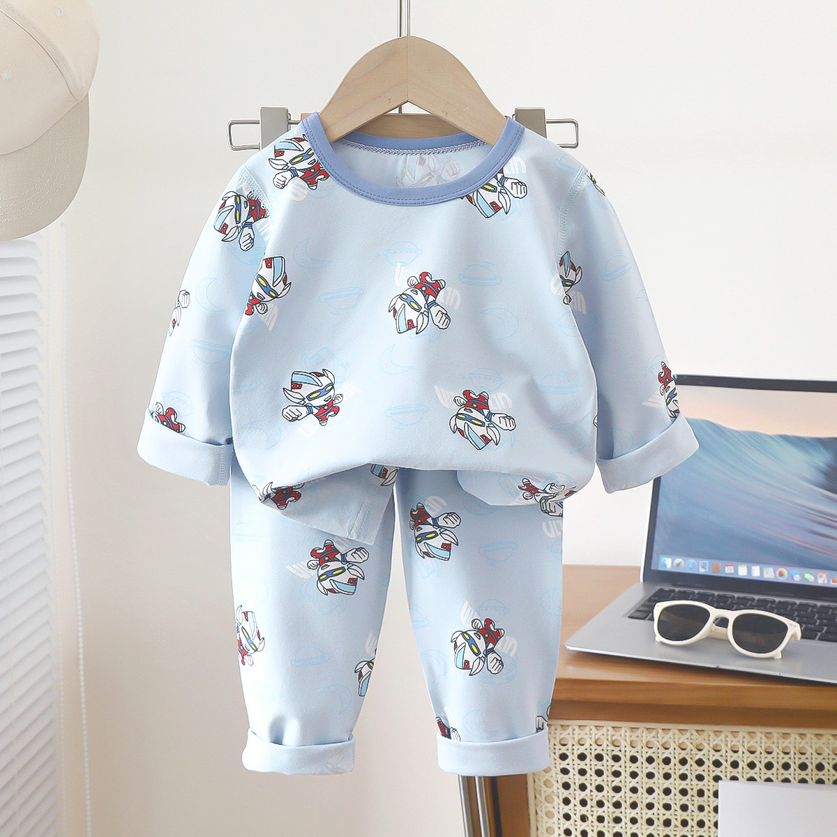 봄과 가을 어린이 세트 면 뼈없는 라이크라 소년의 가을 옷 가을 바지 파자마 아기 홈 옷