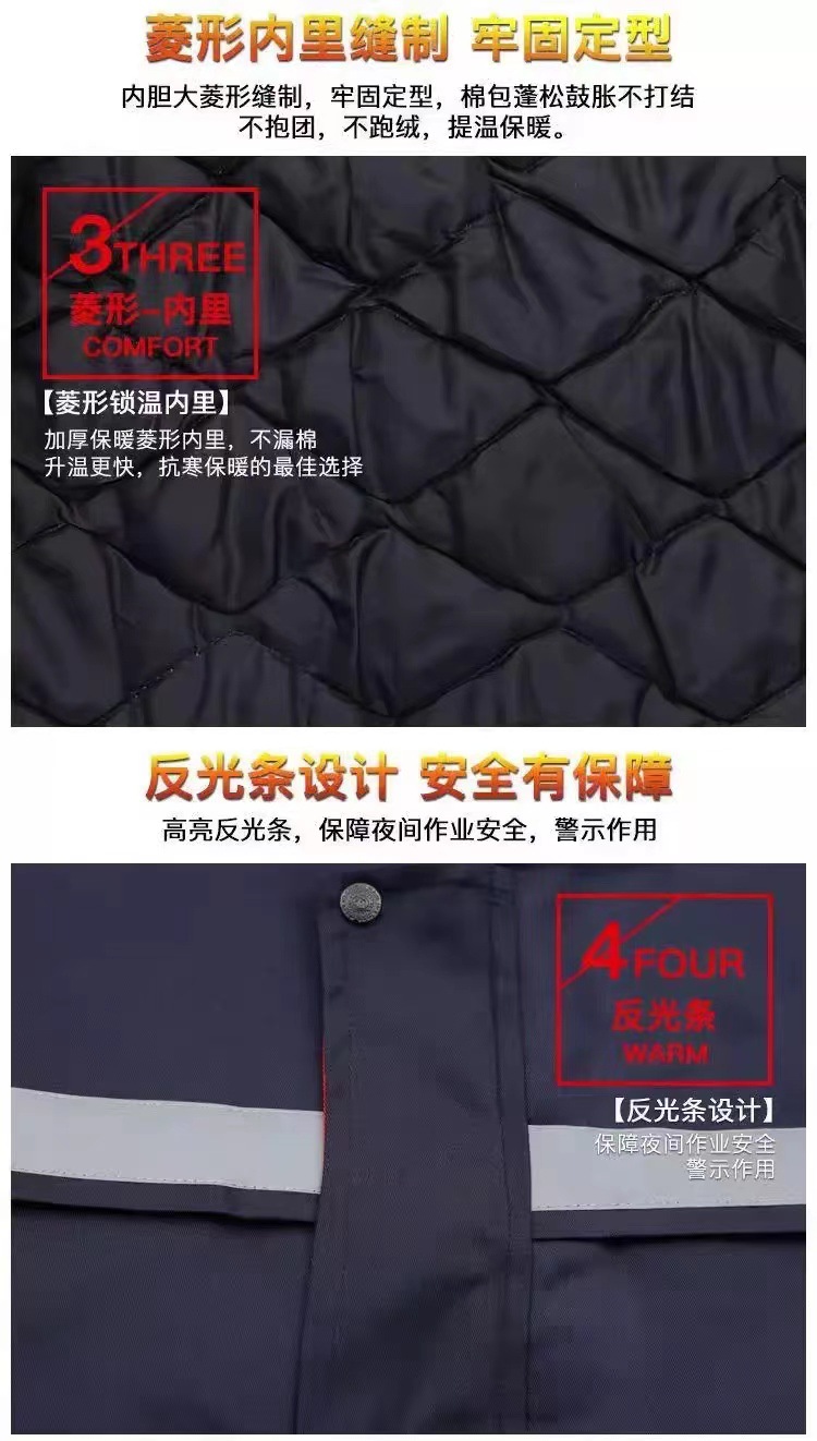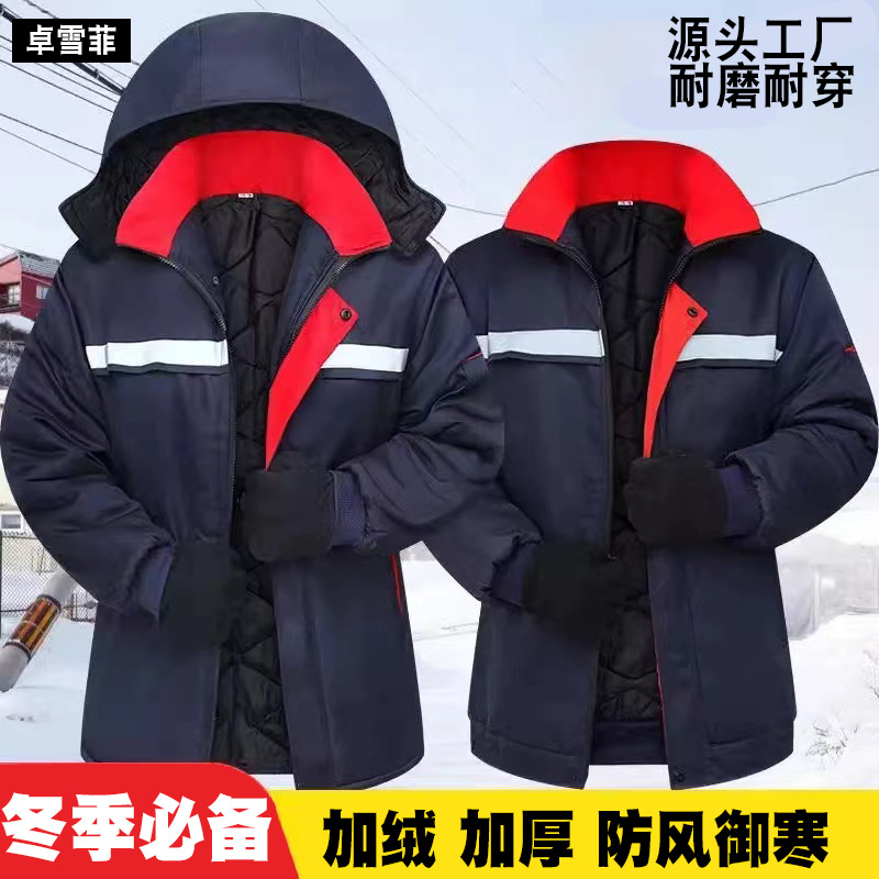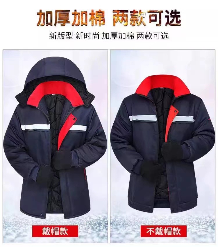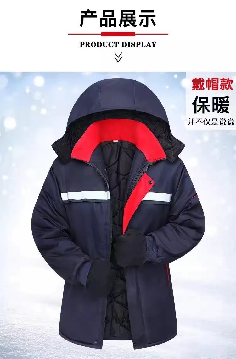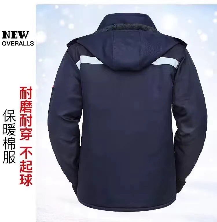 겨울면 패딩 재킷 남성용 두꺼운 내한성 따뜻한 반사 스트립 재킷면 패딩 재킷 야외 노동 보호 냉장 장 전기 용접면 패딩 재킷