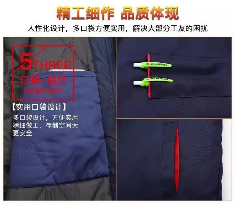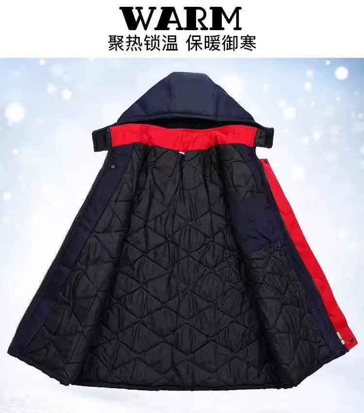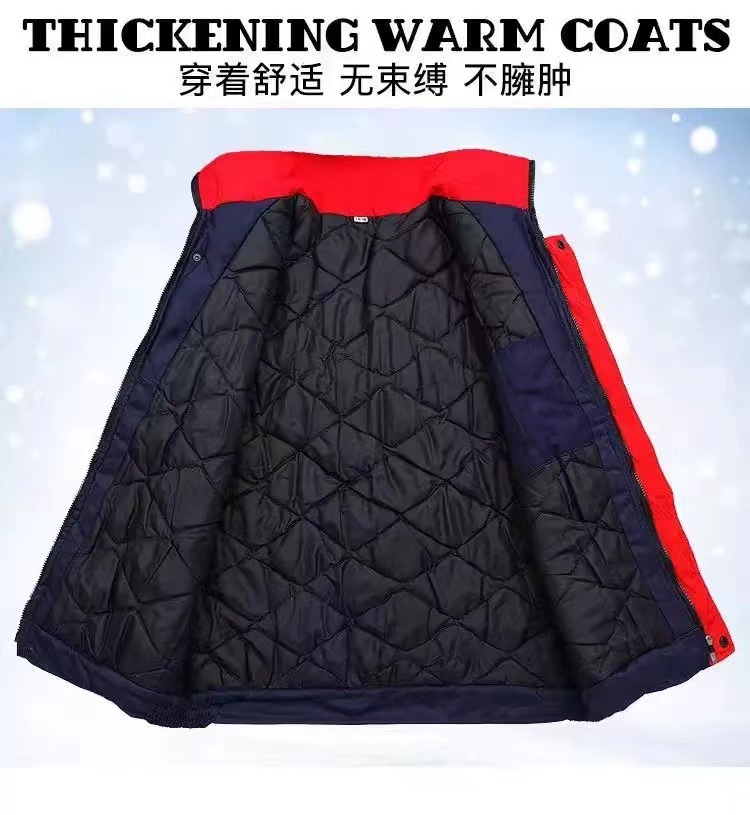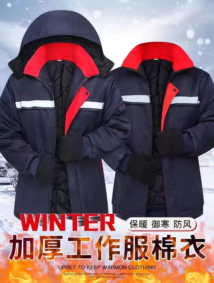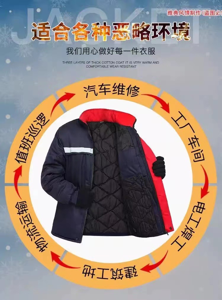 겨울면 패딩 재킷 남성용 두꺼운 내한성 따뜻한 반사 스트립 재킷면 패딩 재킷 야외 노동 보호 냉장 장 전기 용접면 패딩 재킷