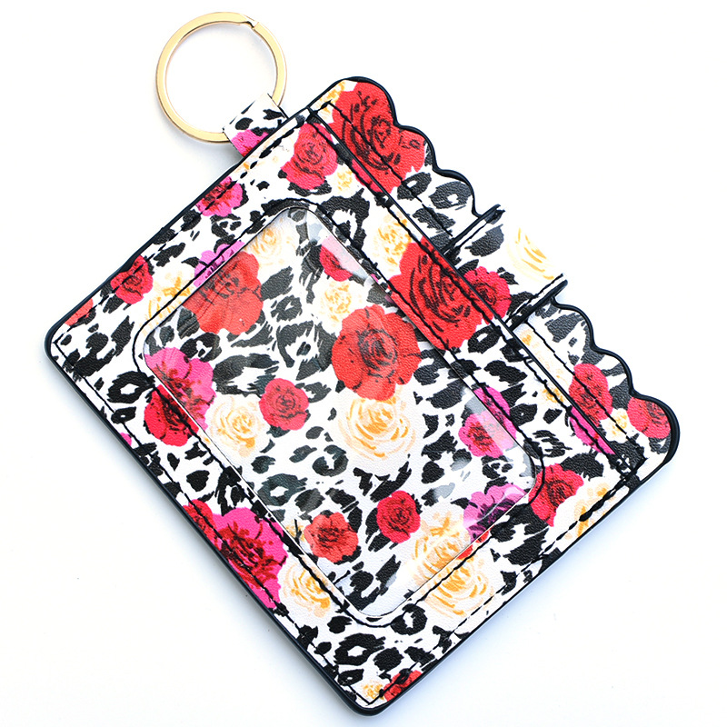 유럽과 미국의 국경 새로운 레오파드 무늬 잉크 그림 로즈 PU 가죽 지갑 여성의 멀티 카드 ID 가방스토어 가기