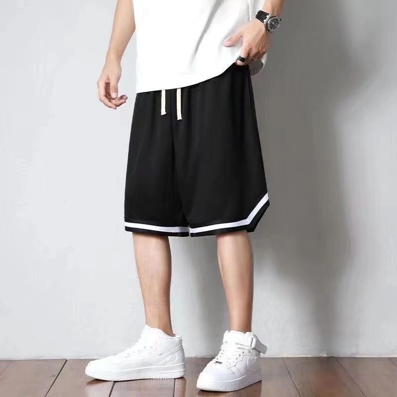 스포츠 반바지 남자 여름 얇은 느슨한 농구 바지 유행 빠른 건조 해변 중간 길이 바지 아이스 실크 캐주얼 바지