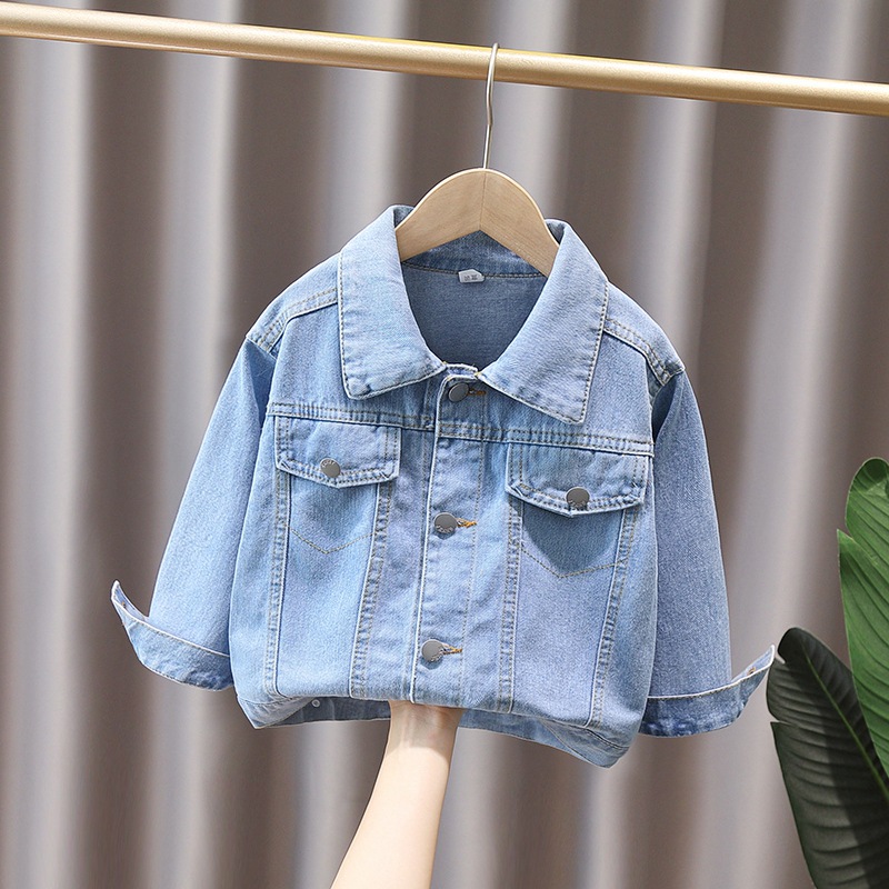 아기 소녀 데님 코트 스타일 소녀 활 느슨한 탑 2024 봄과 가을 새로운 캐주얼 재킷 옷스토어 가기