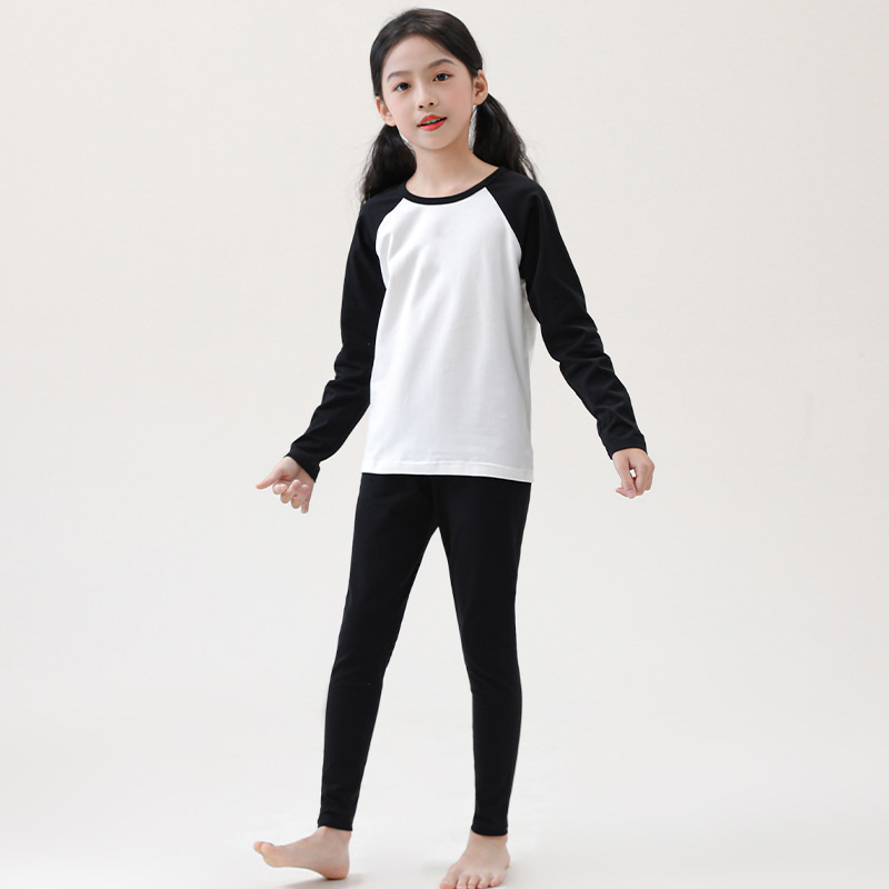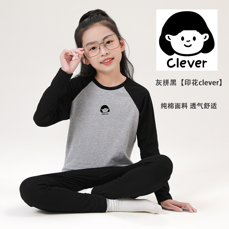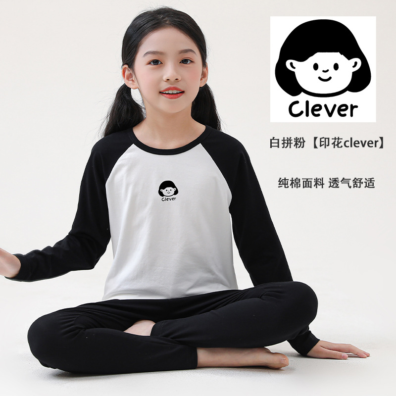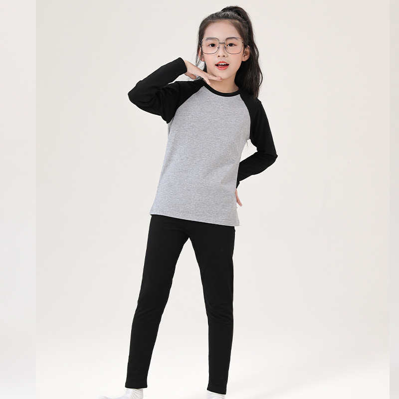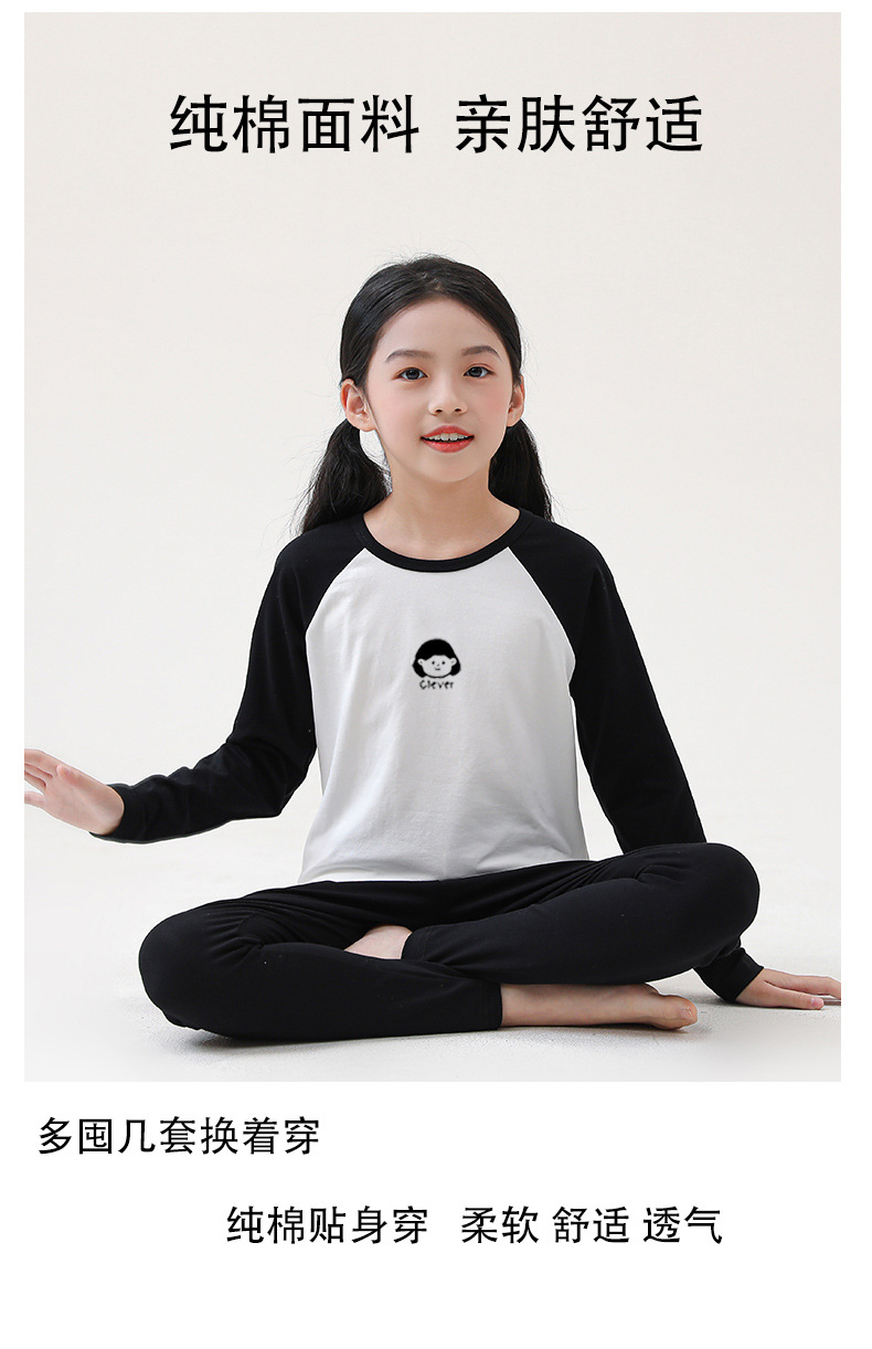 어린이 순면 가을 옷 및 바지 세트 중 및 대형 어린이 홈 옷 잠옷베이스 착용 학생 면 속옷 플러그인 슬리브