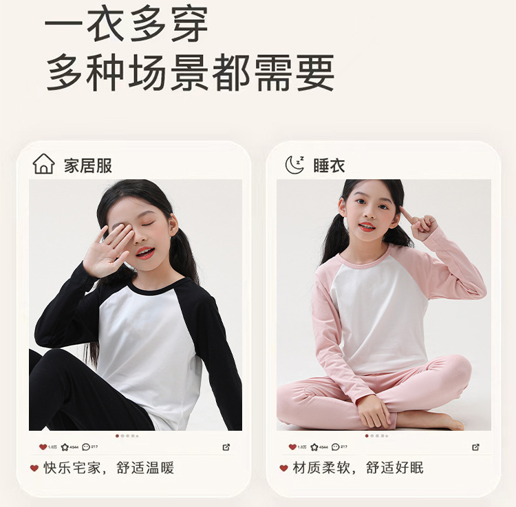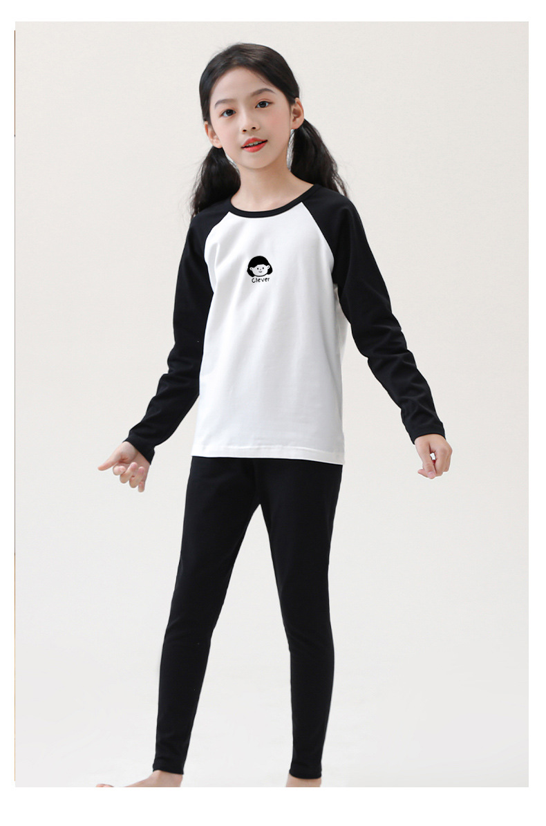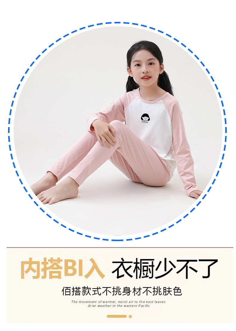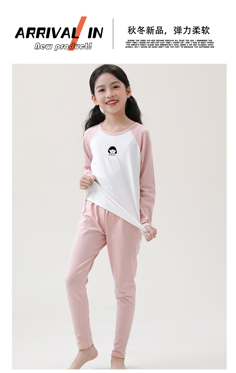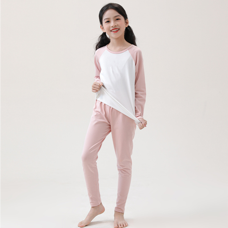 어린이 순면 가을 옷 및 바지 세트 중 및 대형 어린이 홈 옷 잠옷베이스 착용 학생 면 속옷 플러그인 슬리브