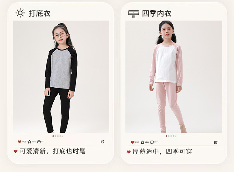 어린이 순면 가을 옷 및 바지 세트 중 및 대형 어린이 홈 옷 잠옷베이스 착용 학생 면 속옷 플러그인 슬리브스토어 가기
