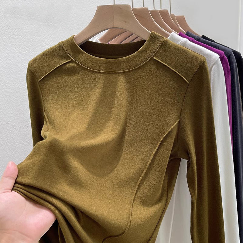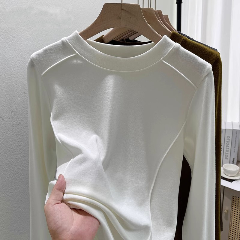 유럽 양면 벨벳 슬림 핏 슬리밍 내베이스 셔츠 여성의 가을 및 겨울 새로운 서양 스타일 따뜻한 올 매치 티셔츠 탑스토어 가기