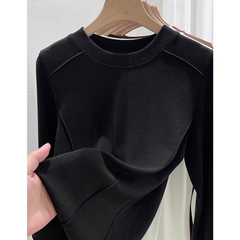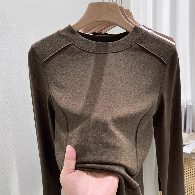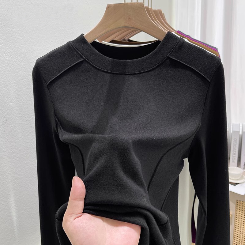 유럽 양면 벨벳 슬림 핏 슬리밍 내베이스 셔츠 여성의 가을 및 겨울 새로운 서양 스타일 따뜻한 올 매치 티셔츠 탑