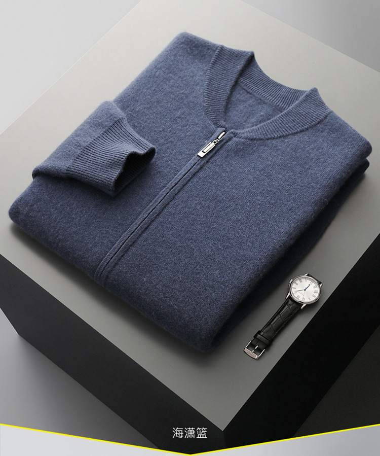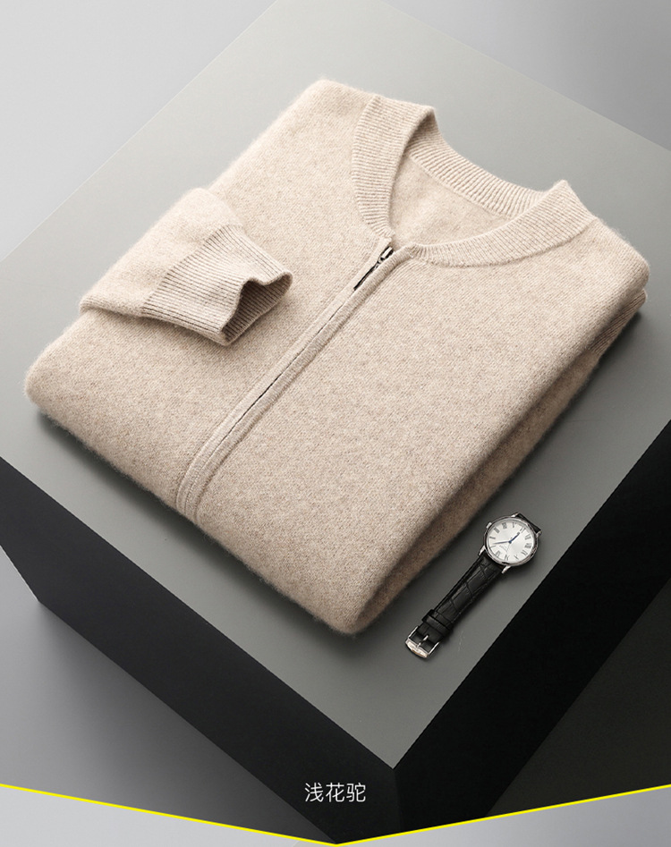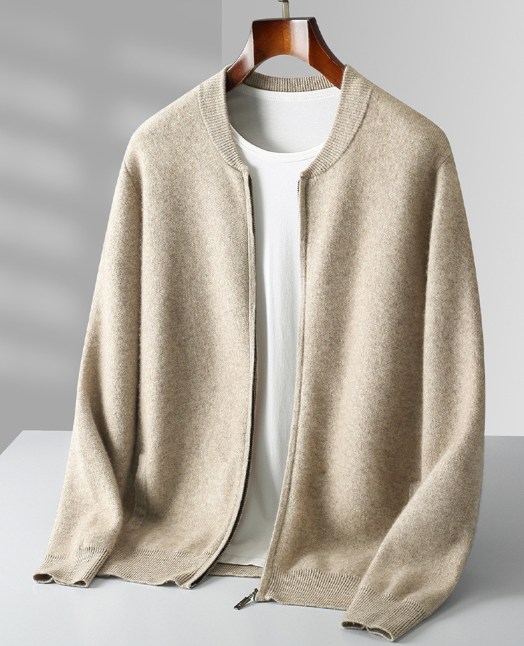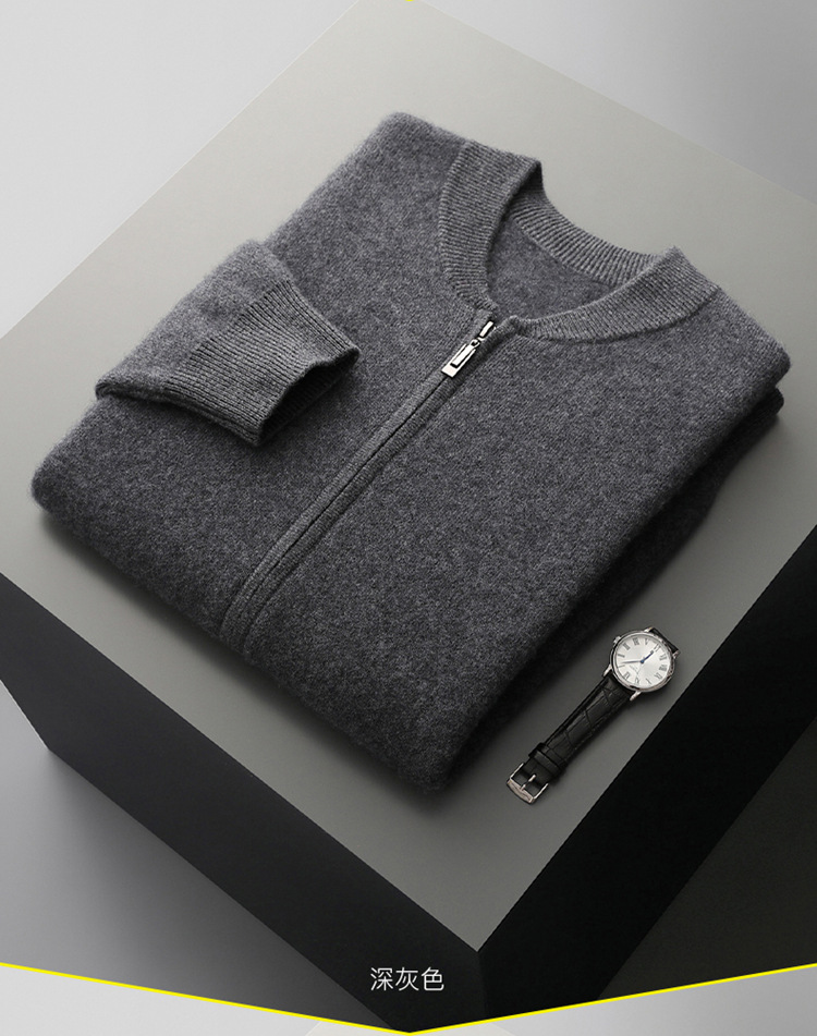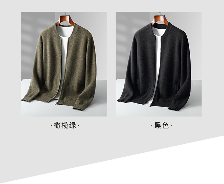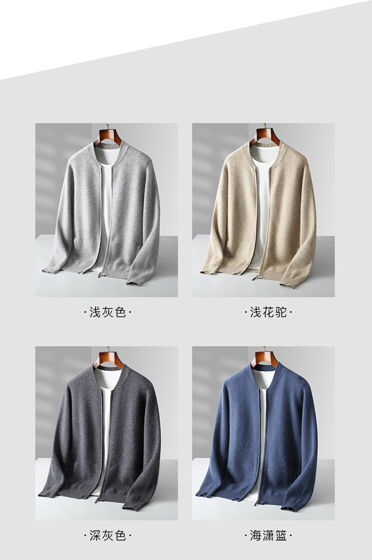 2024 가을과 겨울 새로운 100 순수 양모 카디건 남성용 따뜻한 긴 소매 카디건 크루 넥 탑 남성용 카디건 재킷