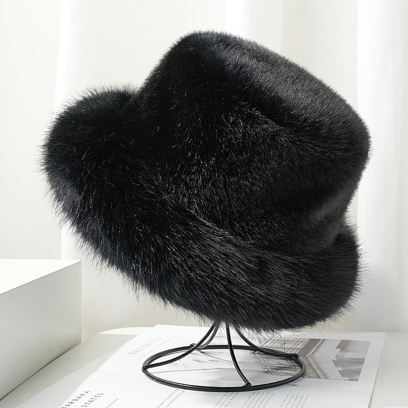 • YY25 모조 밍크 풀 울 몽골리안 모자-블랙